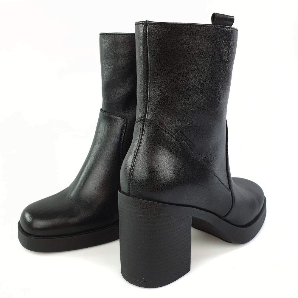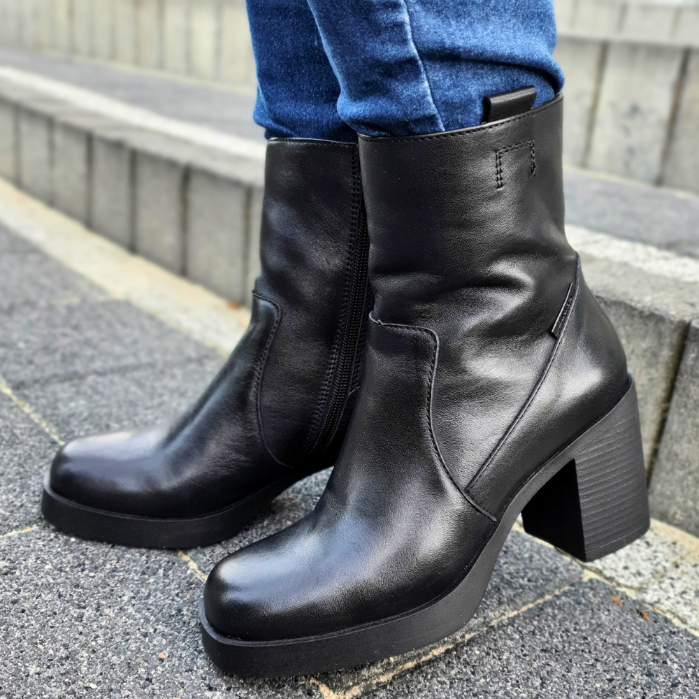 Model 23511 to nowoczesność i klasyka: nowoczesny kształt i gruba podeszwa oraz skóra naturalna w kolorze czarnym. Wnętrze buta jest z tkaniny, miłej w dotyku jak miękki polar. Buty są zapinane na suwak. Stabilny i szeroki obcas zapewni ci wygodę i komfort długiego chodzenia.Dlaczego warto kupić piękne botki?