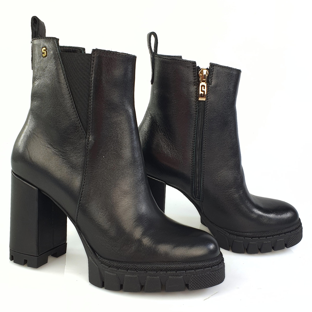 Zaletą botków w modelu 6491A jest doskonale dopracowany wzór- botki dobrze dopasowują się do stopy i świetnie się na niej układają podczas chodzenia. Botki wykonane są z naturalnej skóry, która zapewni stopom wygodę i przewiewność. Botki są zapinane na suwak a z boku cholewki jest wszyta gumeczka, która ułatwia zakładanie i poprawia komfort użytkowania. Grubsza ale lekka i dobrze uginająca się podeszwa chroni przed zimnem i zapewnia wygodę. Obcas to stabilny szeroki słupek. Wewnątrz botków ocieplina jak polar w kolorze czarnym. Buty są eleganckie, klasyczne i praktyczne a jednocześnie bardzo wygodne.