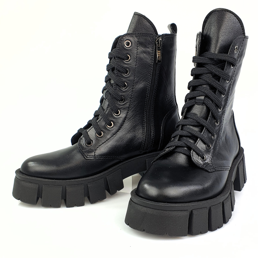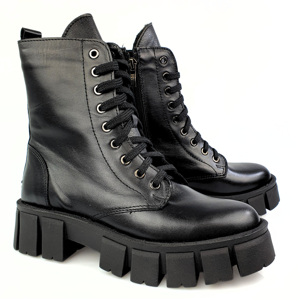 Traperki model BOC1463 to same zalety: gruba, wygodna podeszwa (3,5 cm), naturalna skóra licowa w kolorze czarnym, płaski obcas (4,5 cm). Twoje stopy odczują komfort i miękkość wkładki ze skóry naturalnej.