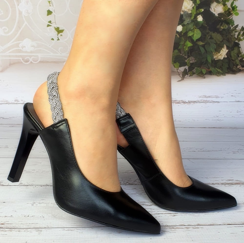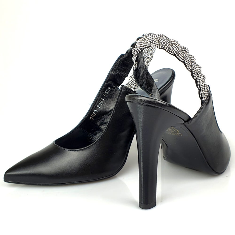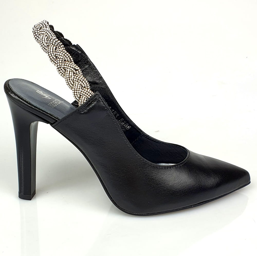 Zaletą czółenek w modelu 2183 jest cholewka wykonana z naturalnej skóry w kolorze czarnym. Twoje stopy odczują komfort i miękkość wkładki ze skóry naturalnej. Odkryta pięta powoduje, że stopa dobrze układa się w bucie. Buty są bardzo dobrze wyprofilowane, stabilny obcasa szpilka ma wysokość ok. 10 cm.