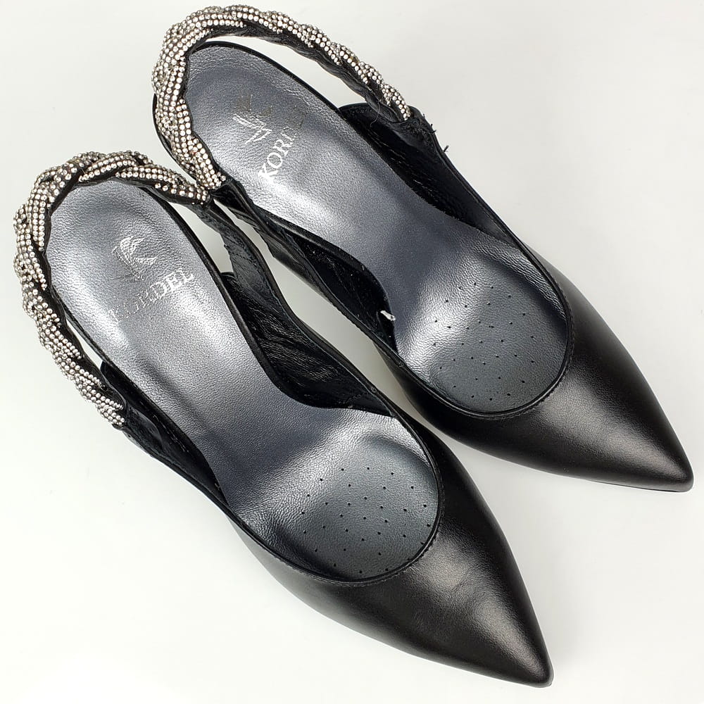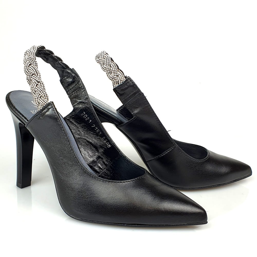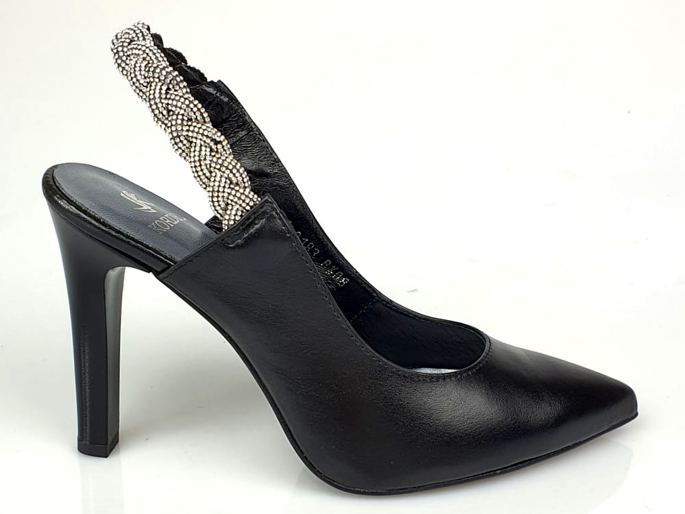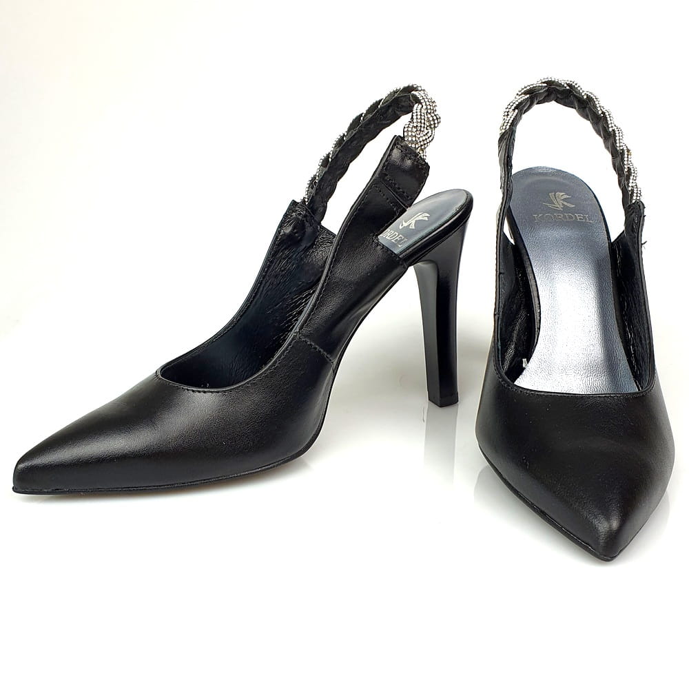 Czółenka na szpilce czarne z ozdobnymi cyrkoniami Kordel 2183