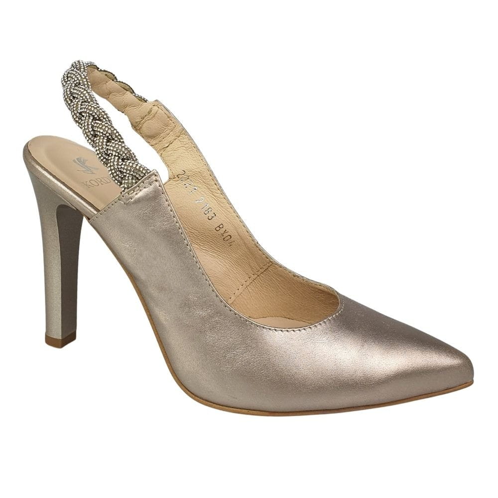 Czółenka na szpilce złote z ozdobnymi cyrkoniami Kordel 2183