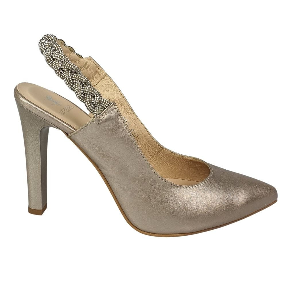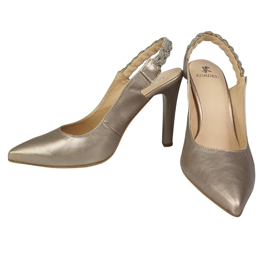 Model 2183 marki Kordel to bardzo eleganckie, klasyczne buty. Ozdobą jest pleciony warkocz wysadzany błyszczącymi kryształkami. Te skórzane czółenka będą wspaniałym uzupełnieniem odświętnej stylizacji, nadają się na wielkie wyjście.