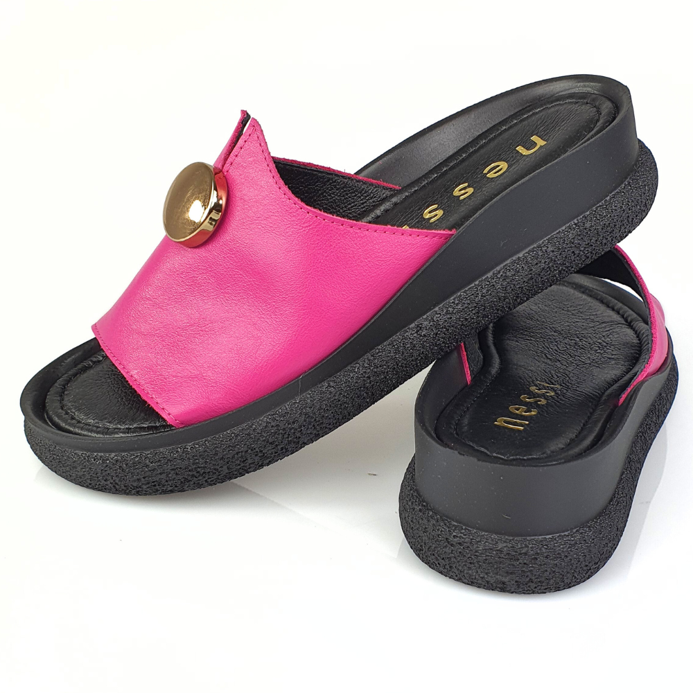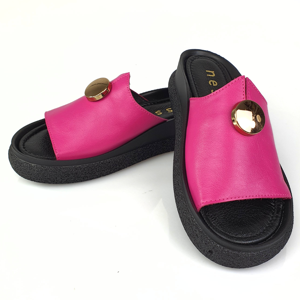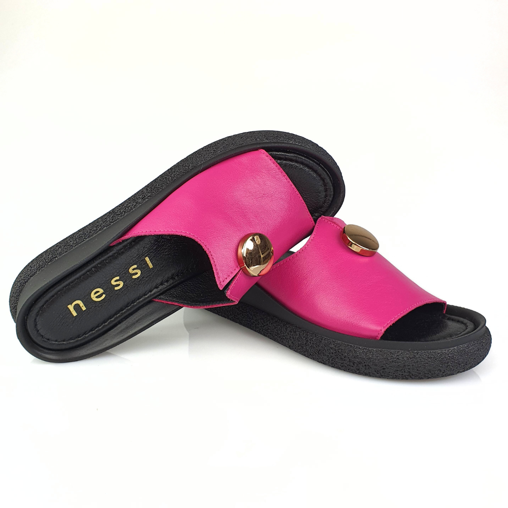 Klapki róż fuksja ze złotym guzikiem NESSI 24452