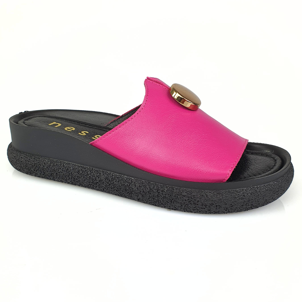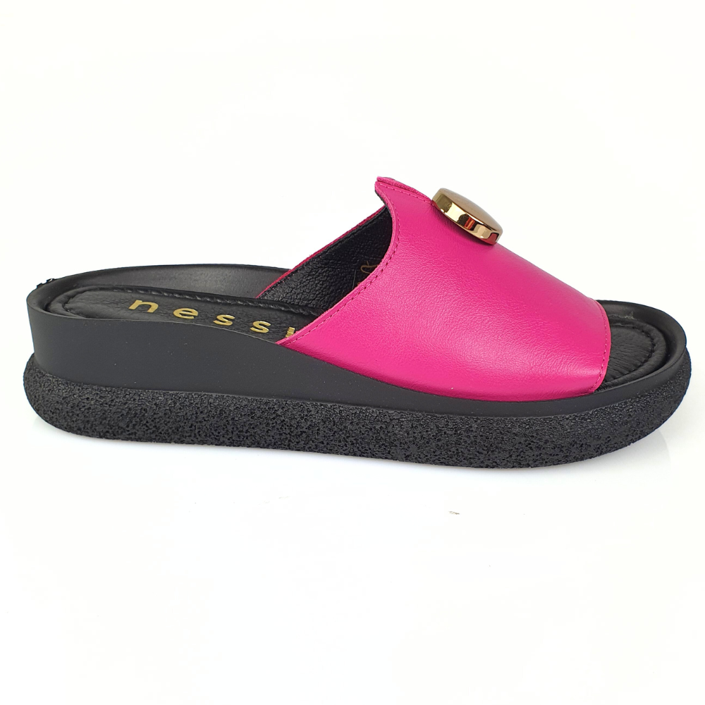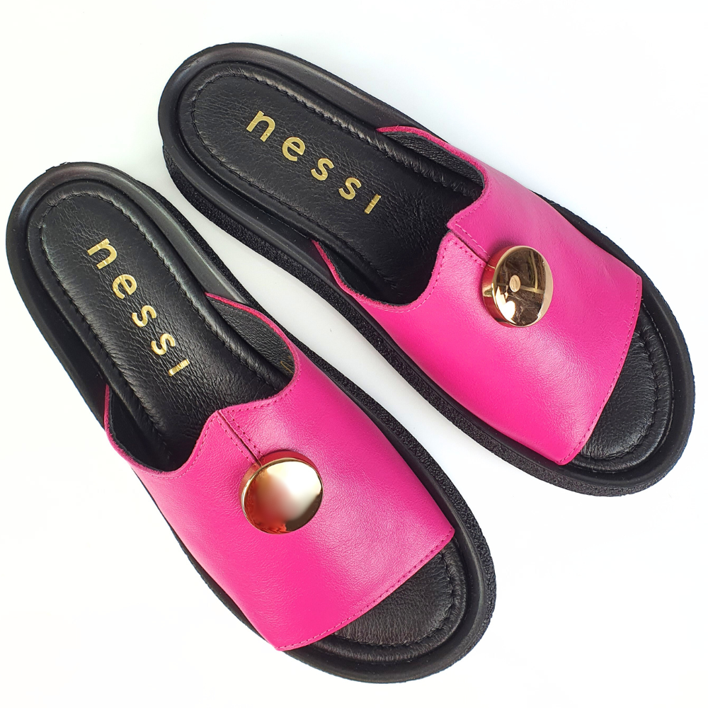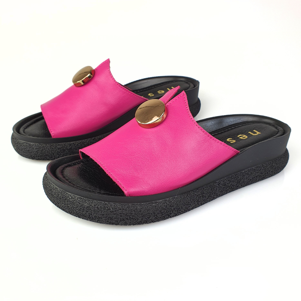 Klapki róż fuksja ze złotym guzikiem NESSI 24452