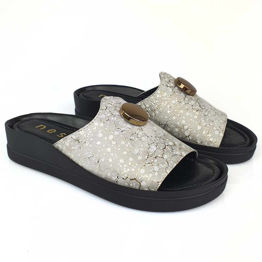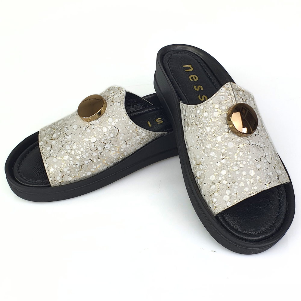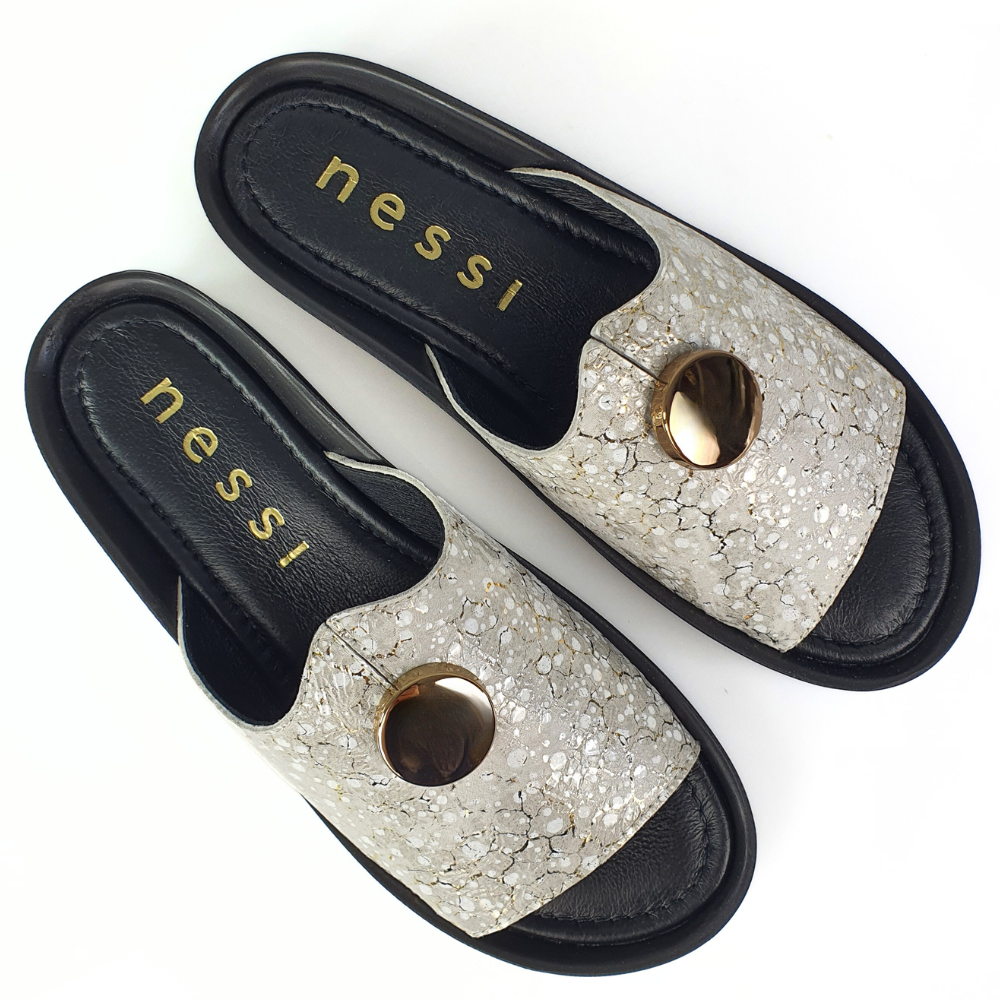 Klapki złote ze wzorem i guzikiem NESSI 24452