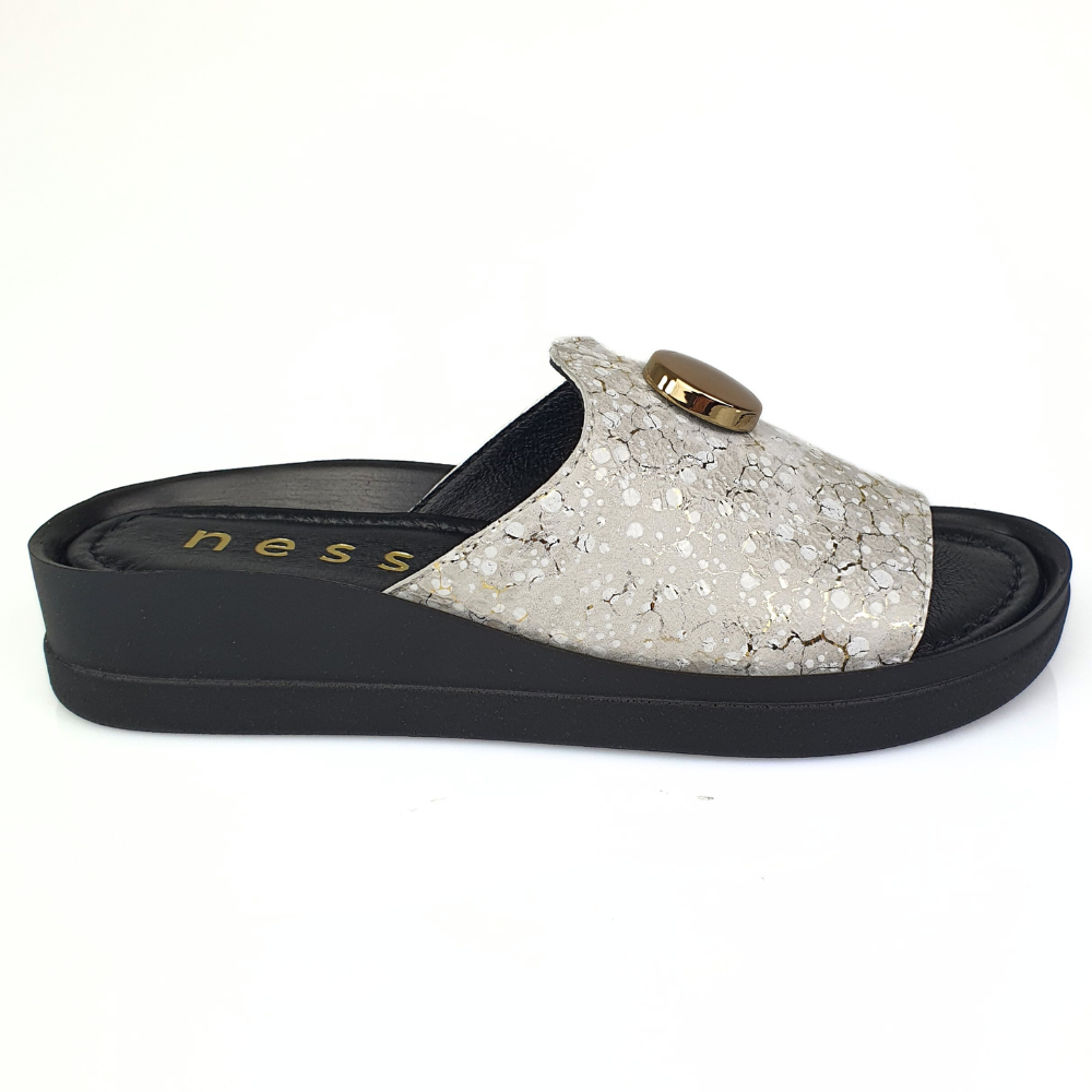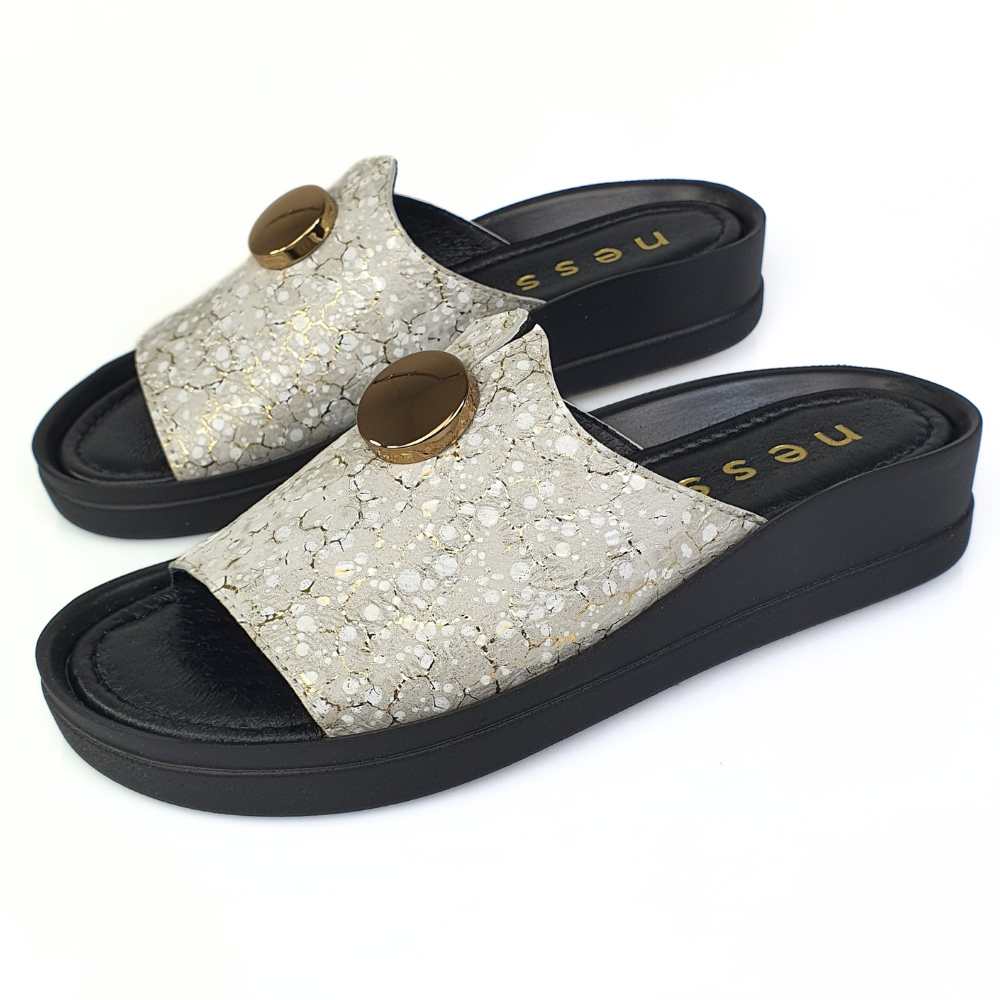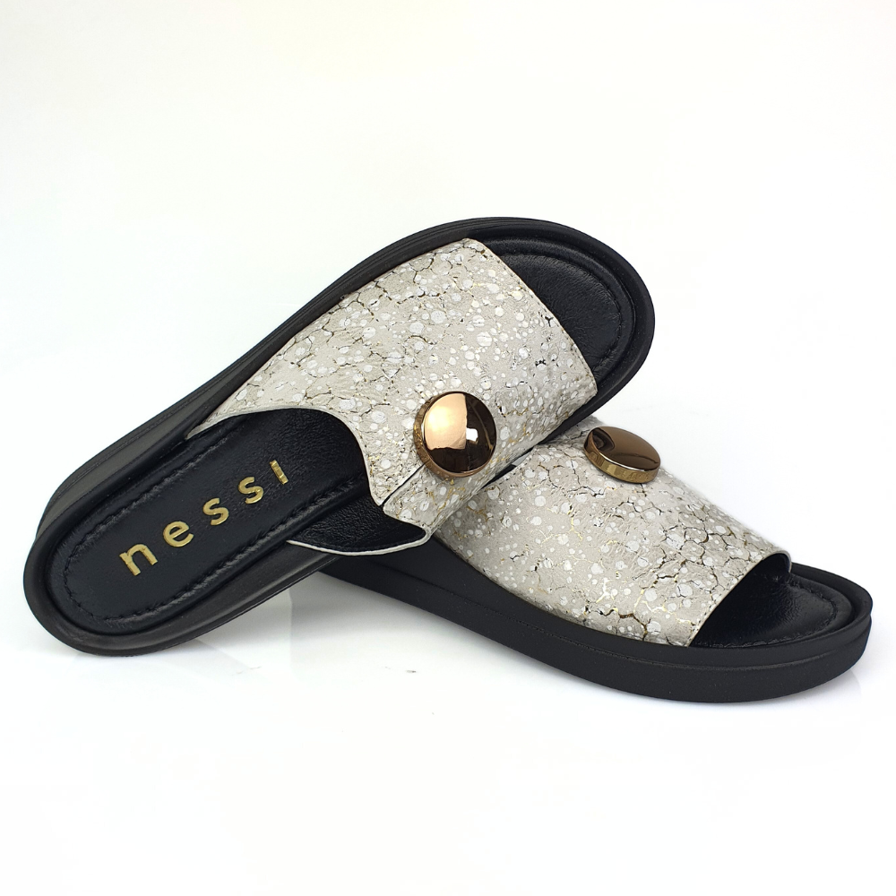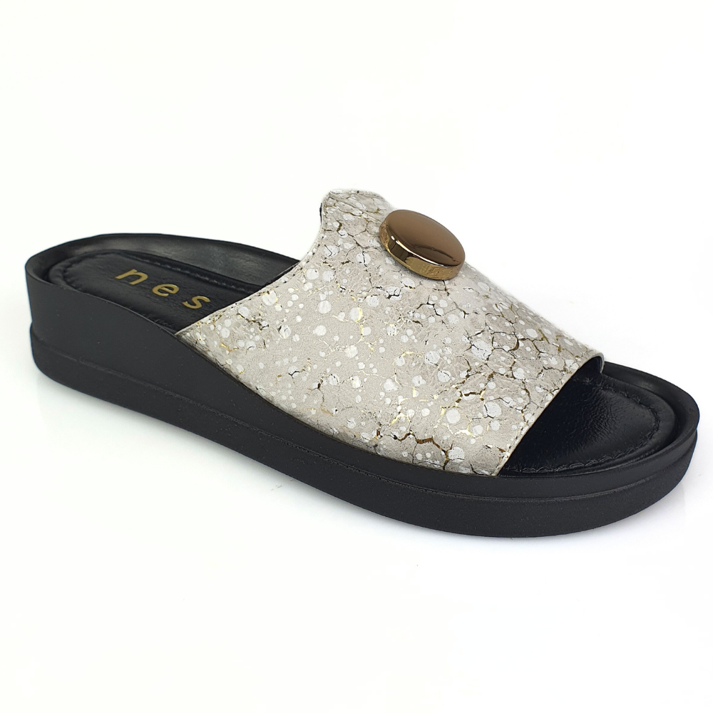 Klapki złote ze wzorem i guzikiem NESSI 24452