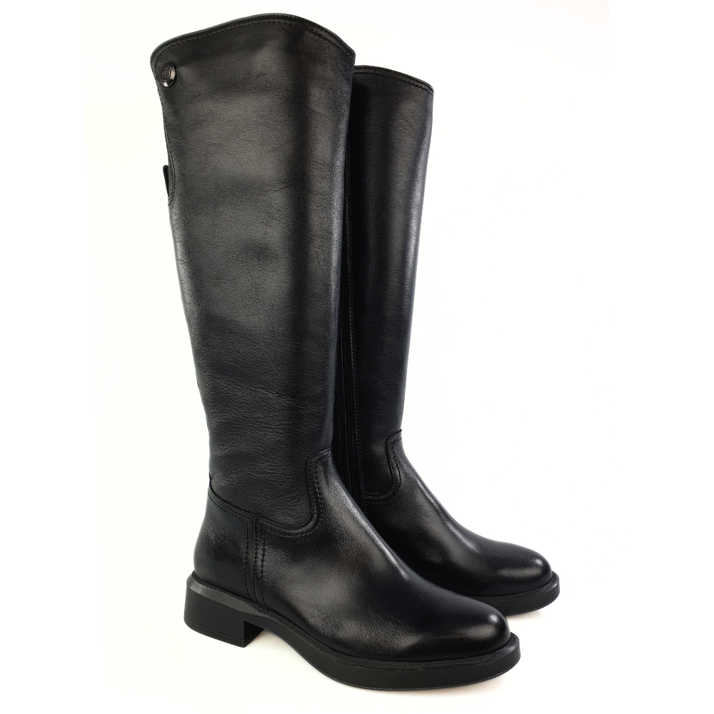 Model 23558 to klasyka i nowoczesność: klasyczny kształt i skóra naturalna licowa w kolorze czarnym. Wnętrze buta jest z tkaniny, miłej w dotyku i miękkiej. Buty są zapinane na suwak. Atutem jest miękkość skóry oraz niewysoki płaski ok. 3,5 cm. Dodatkowo z tyłu cholewki jest wszyta guma, która w razie szerszej łydki rozciąga się (o ok. 2 cm) i dopasowuje kozaki do łydki. Kozaki są na nogi średniej tęgości.Dlaczego warto kupić piękne oficerki?