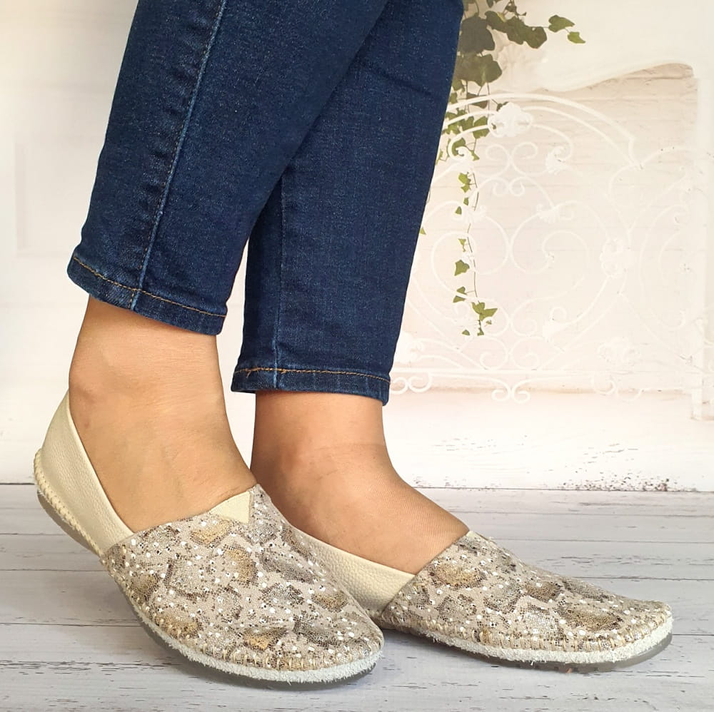 Maciejka 01930 mokasyny espadryle beż złoty 1930