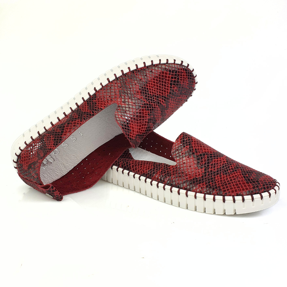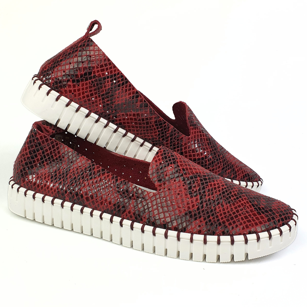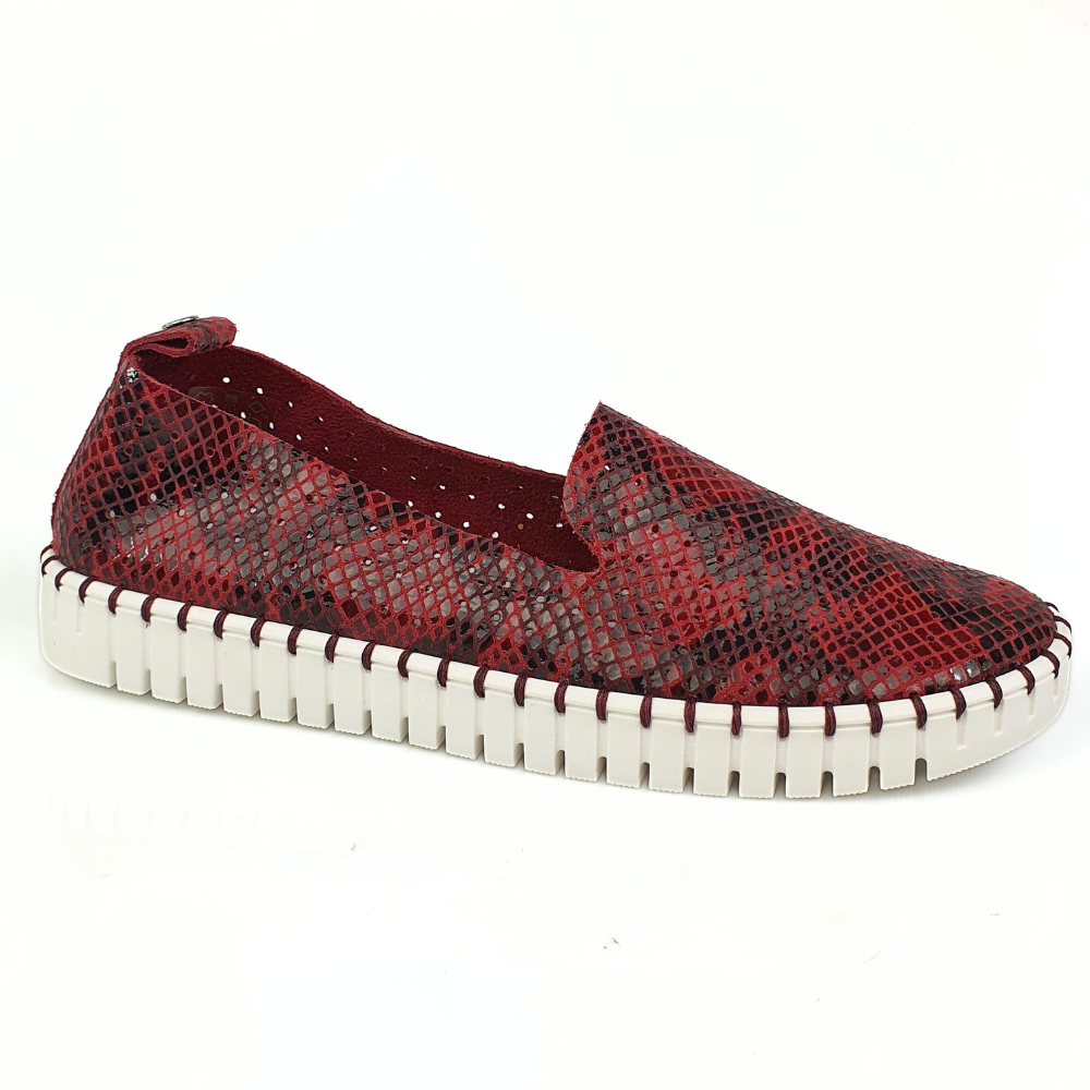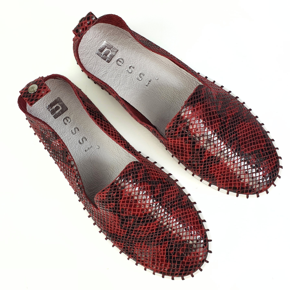 Miękkie mokasyny damskie skórzane bordo wzór wąż Nessi 18390