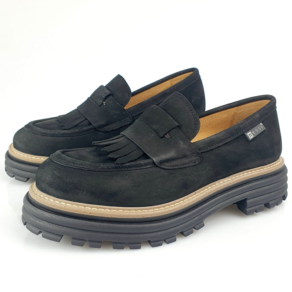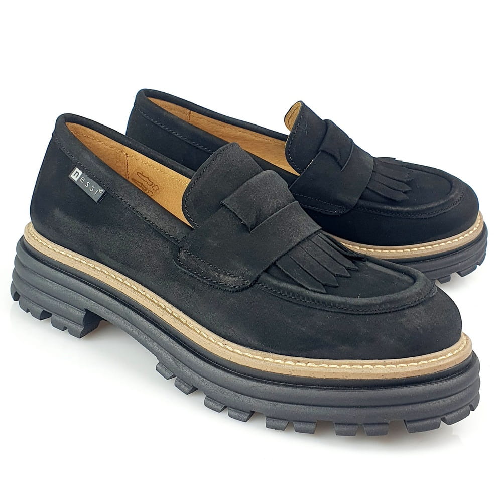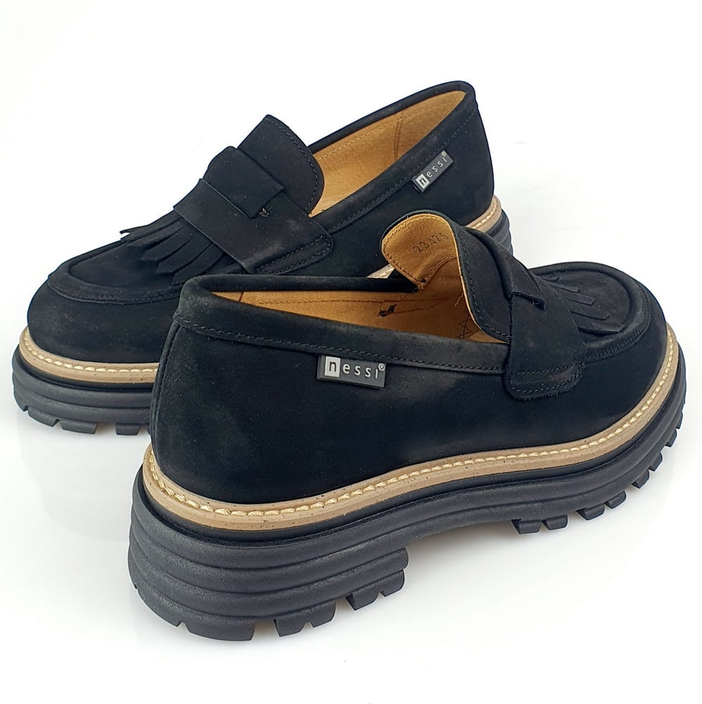 Buty NESSI produkowane są ręcznie przez rzemieślników w polskiej fabryce. To doskonale dopracowany wzór i bardzo staranne wykonanie. Buty marki NESSI znane są jako najwygodniejsze na rynku, ale także jako zgodne z najnowszymi trendami w modzie. Teraz modne są masywne mokasyny na grubym spodzie, więc NESSI proponuje mokasyny model 23425. Ten model to nowoczesne wzornictwo, najnowsza moda i trend, a jednocześnie klasyka i wygoda.