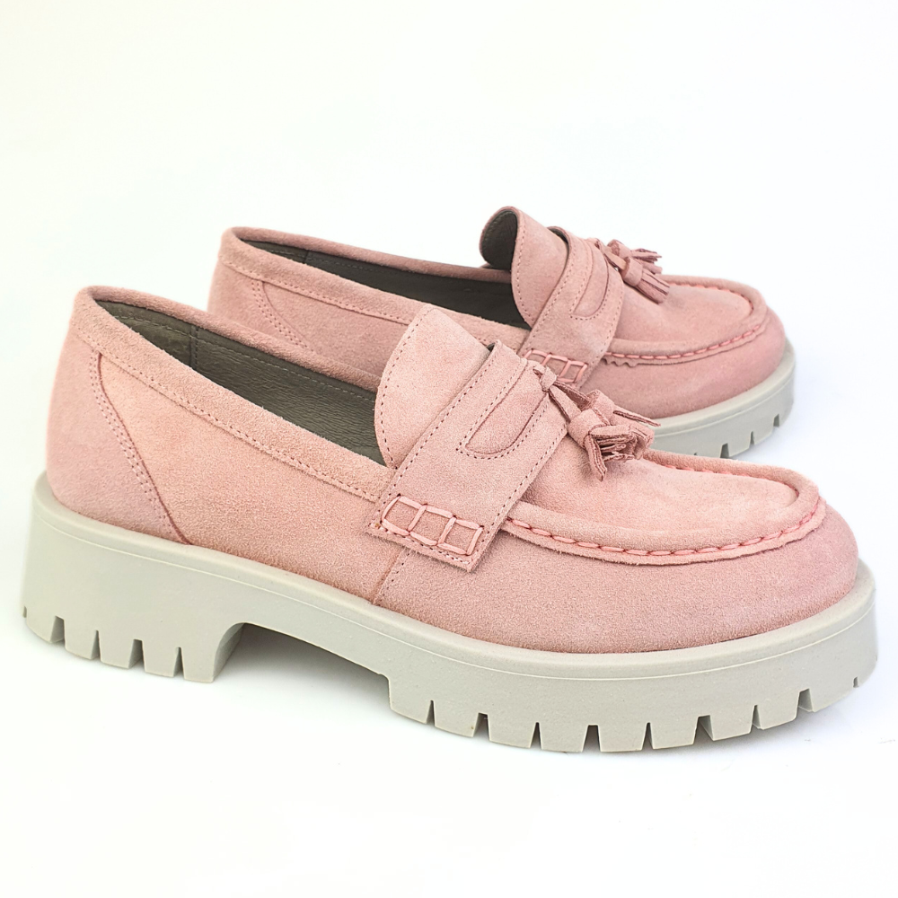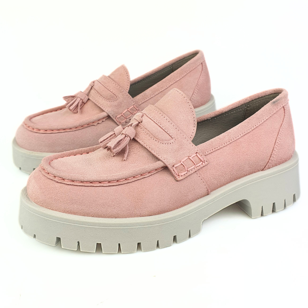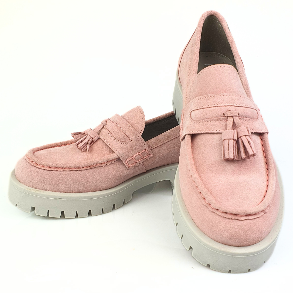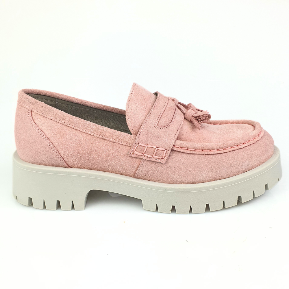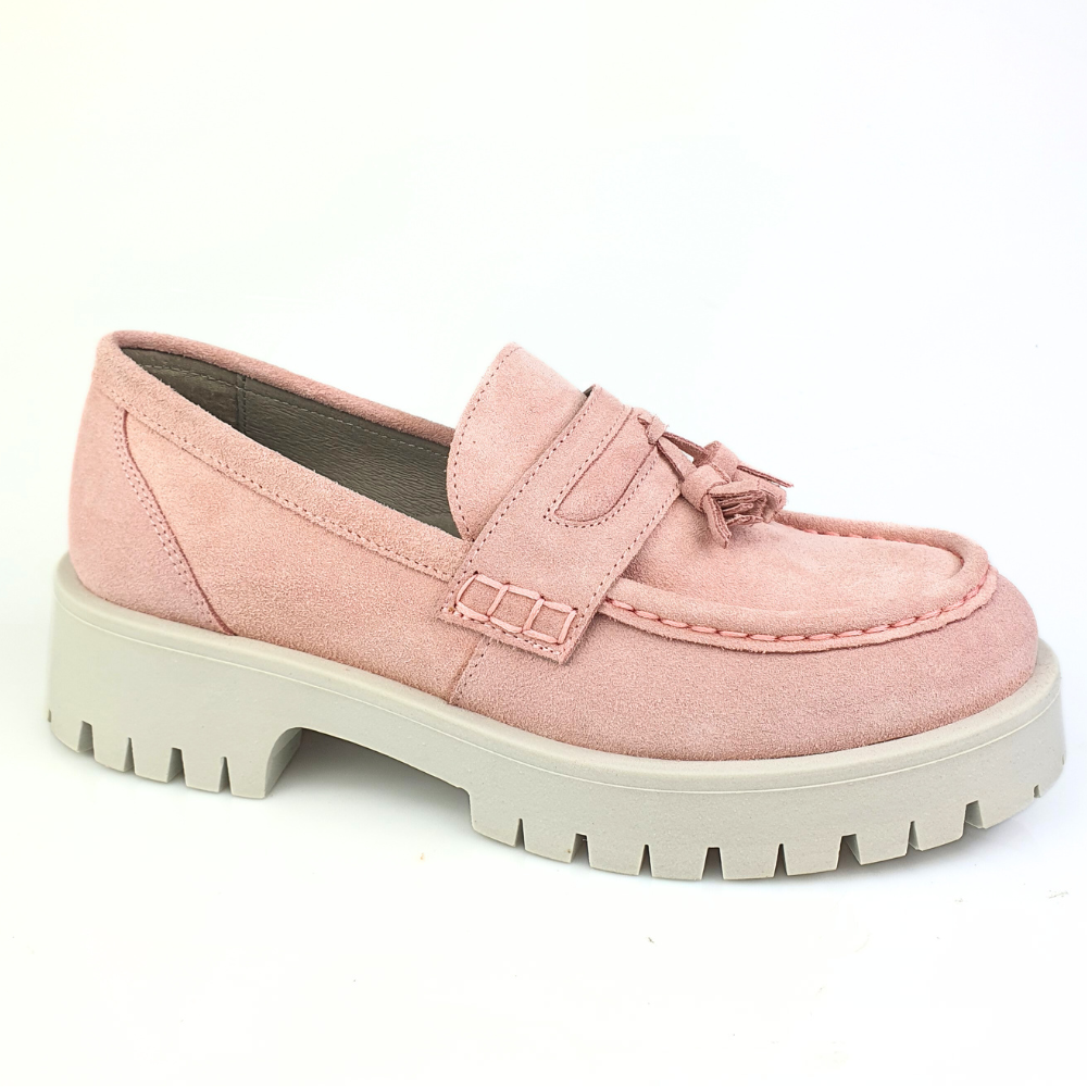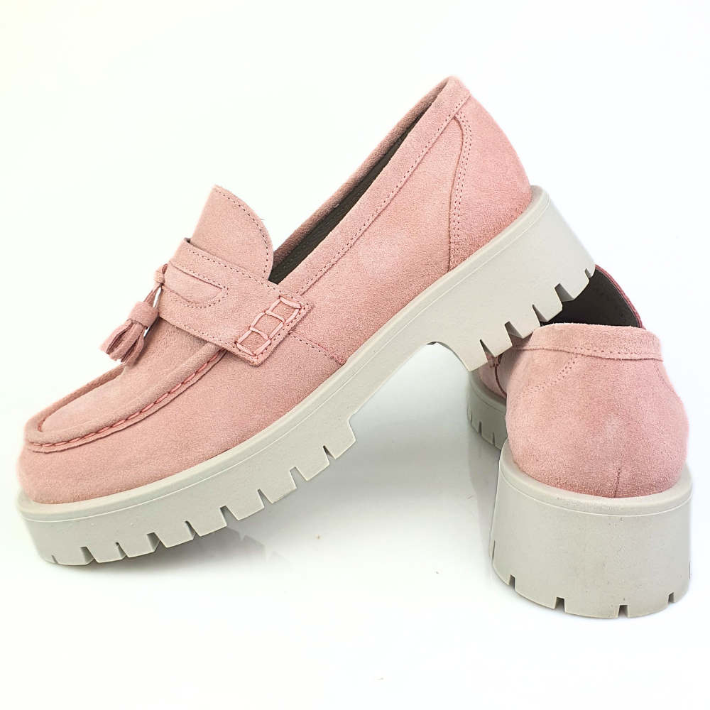 Zaletą mokasynów w modelu 21079 jest cholewka wykonana jest z naturalnej skóry zamszowej, która zapewni stopom wygodę i przewiewność. Obcas jest płaski, ma ok. 4 cm wysokości. Nawet podczas długiego użytkowania Twoje stopy odczują komfort i miękkość wkładki ze skóry naturalnej. Wzrok przyciąga piękny różowy kolor.