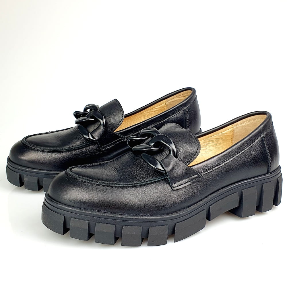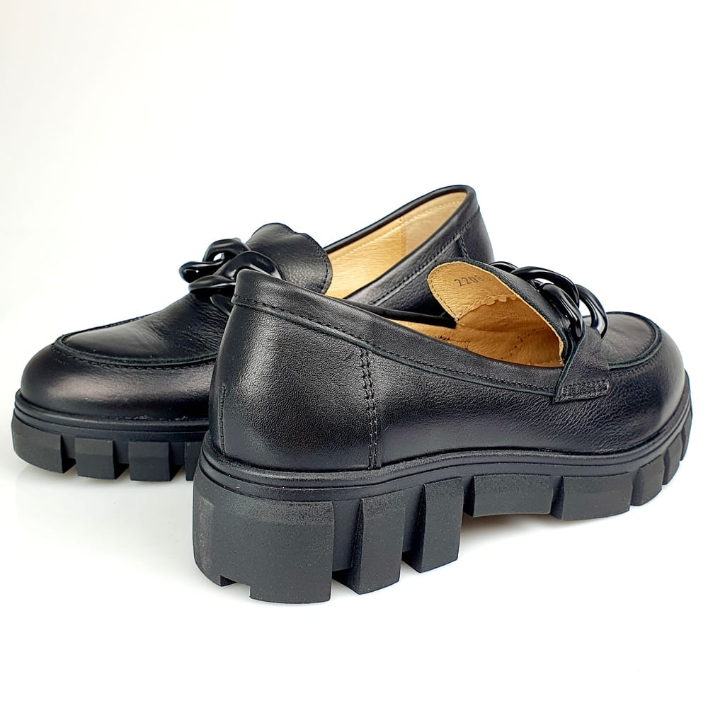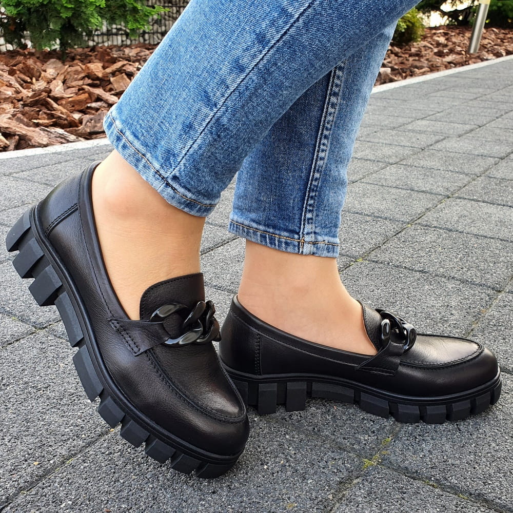 Mokasyny na grubym spodzie czarne skóra lico Nessi 23085