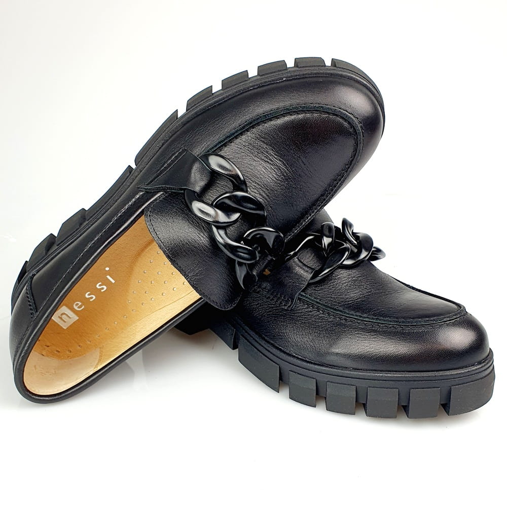 Buty NESSI produkowane są ręcznie przez rzemieślników w polskiej fabryce. To doskonale dopracowany wzór i bardzo staranne wykonanie. Buty marki NESSI znane są jako najwygodniejsze na rynku, ale także jako zgodne z najnowszymi trendami w modzie. Teraz modne są masywne mokasyny na grubym spodzie, więc NESSI proponuje mokasyny model 23085. Ten model to nowoczesne wzornictwo, najnowsza moda i trend, a jednocześnie klasyka i wygoda.