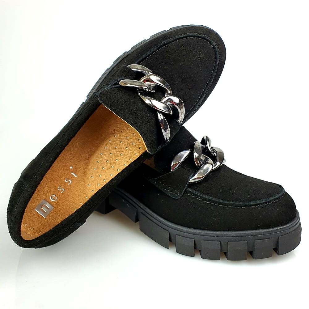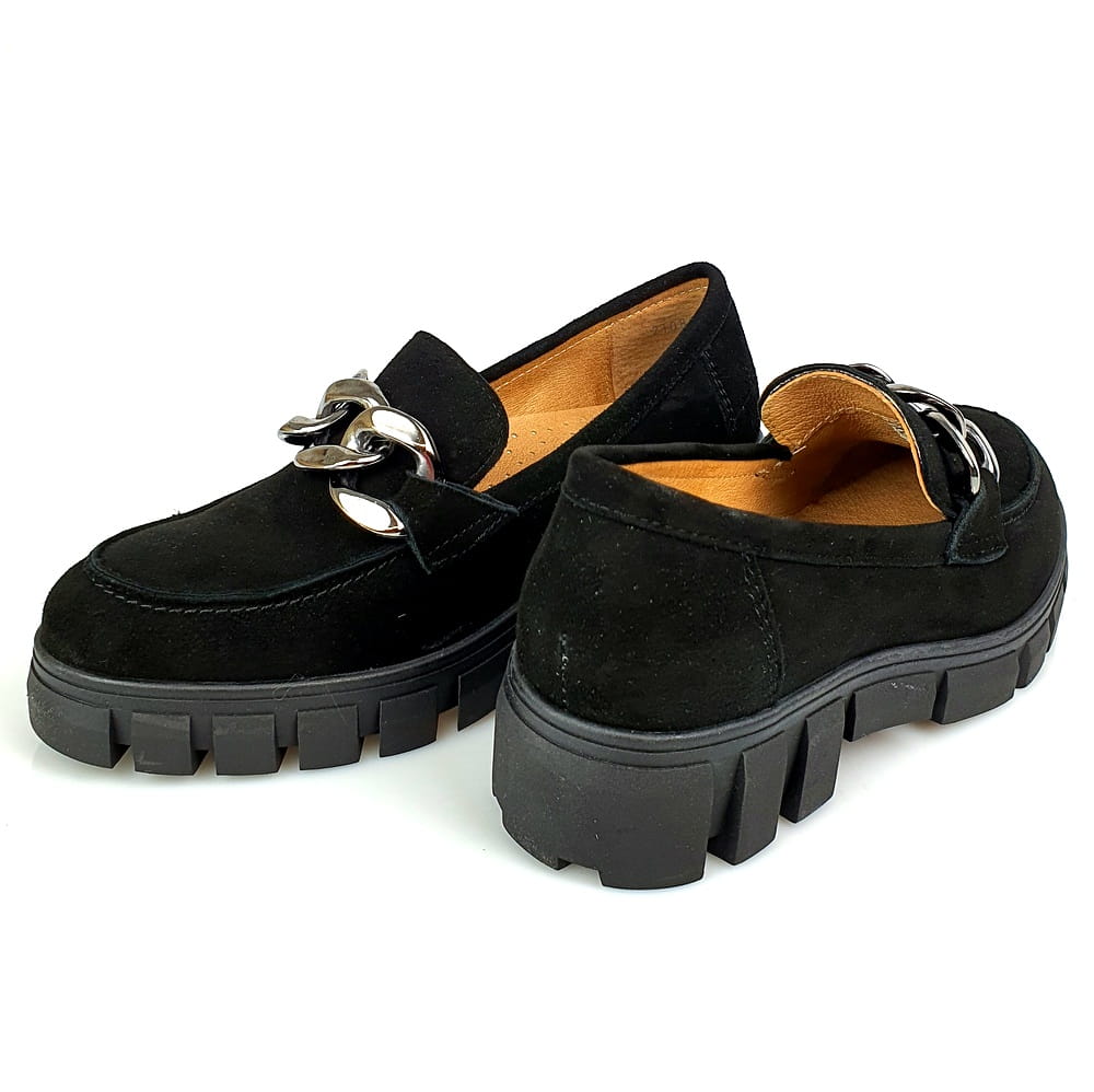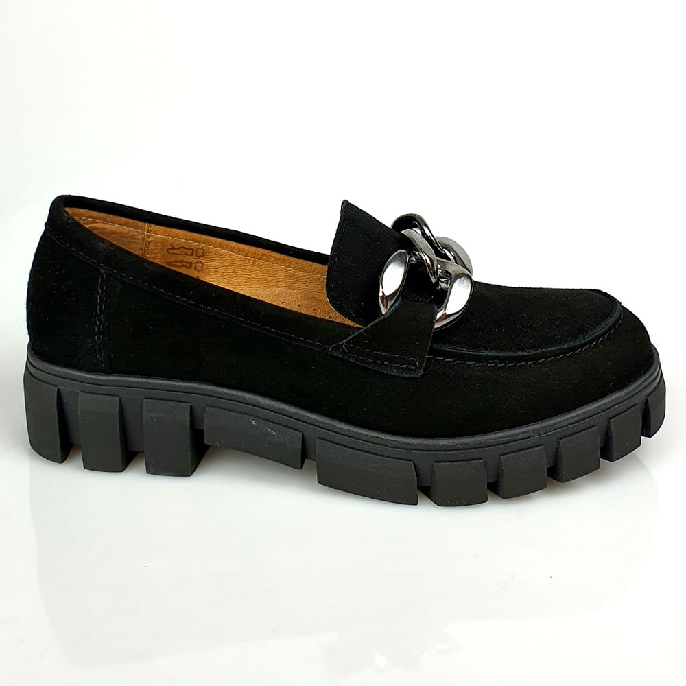 Mokasyny na grubym spodzie czarne skóra zamsz Nessi 23085