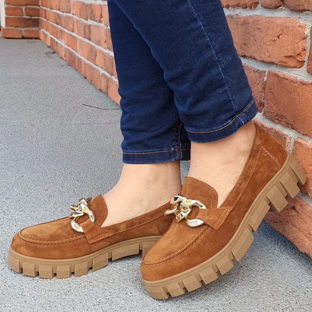 Mokasyny na grubym spodzie rude skóra welur Nessi 23085