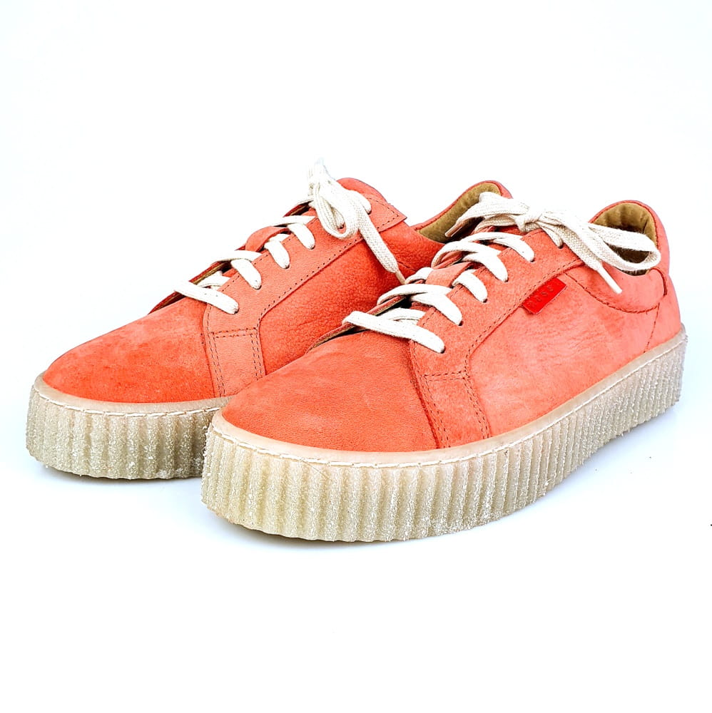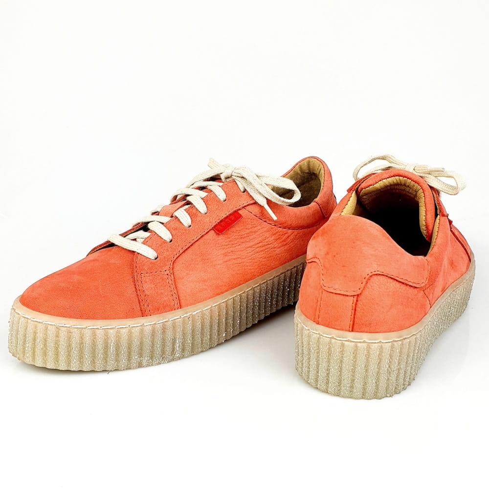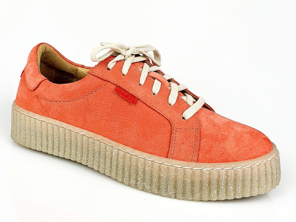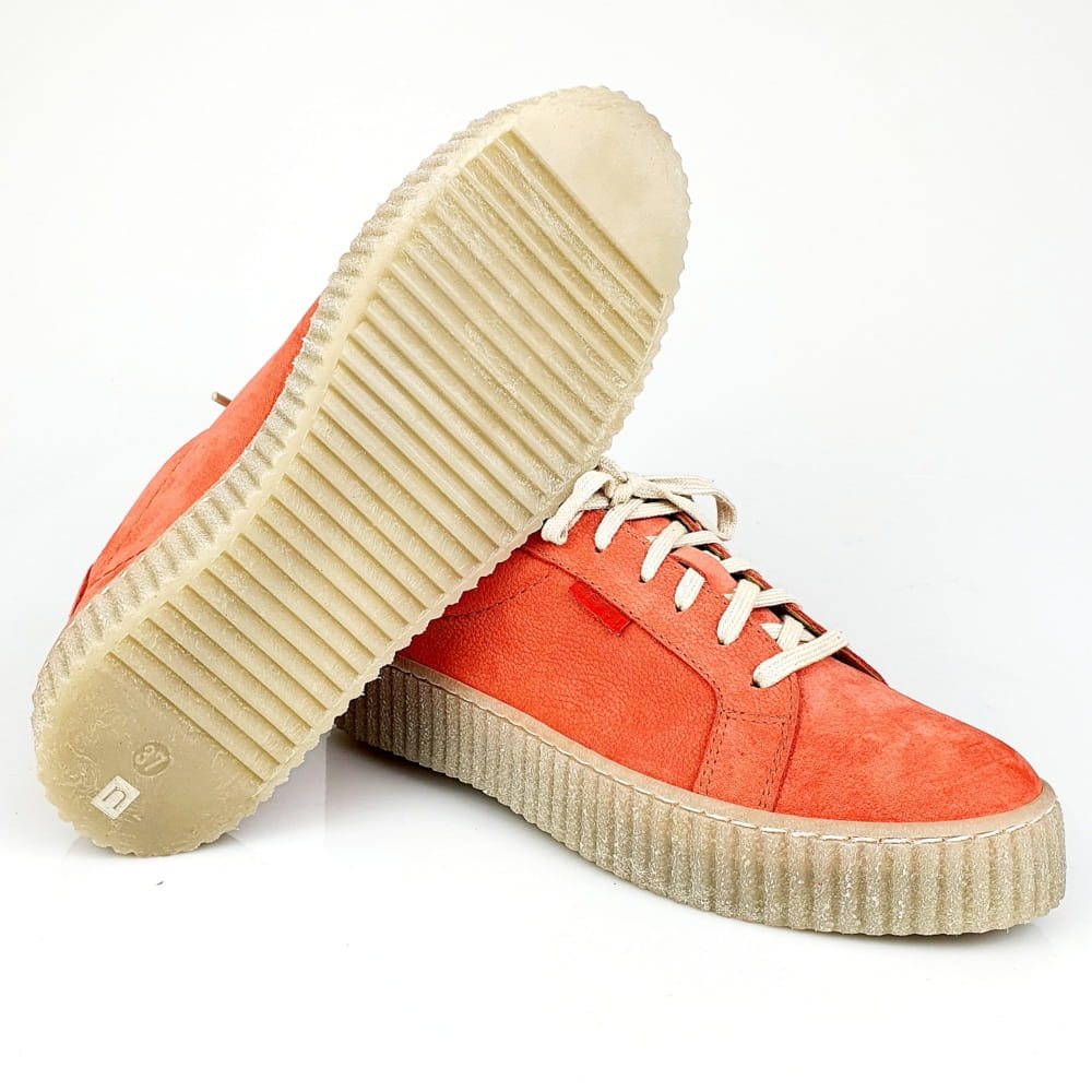 Sznurowane półbuty w kolorze czerwonym (odcień łososiowo-malinowy, nie intensywny).
