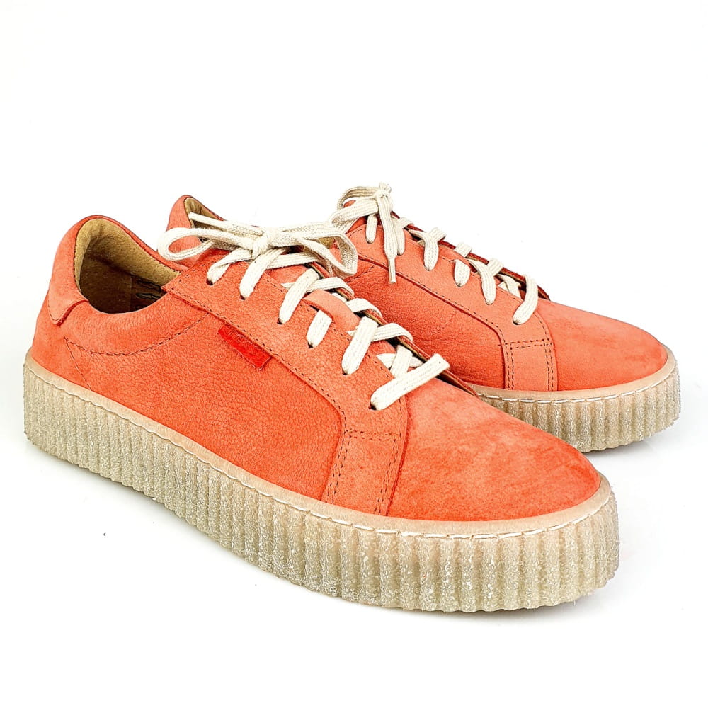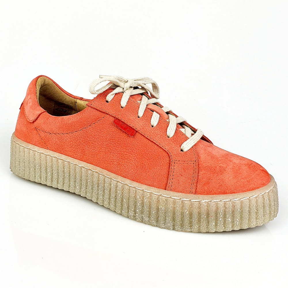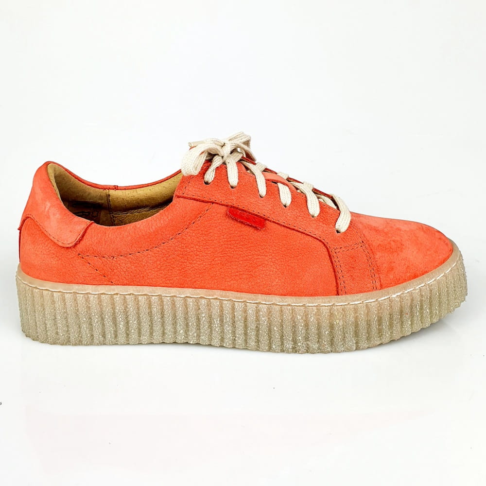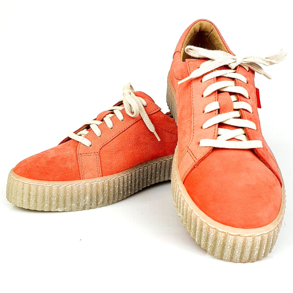 Sznurowane półbuty w kolorze czerwonym (odcień łososiowo-malinowy, nie intensywny).