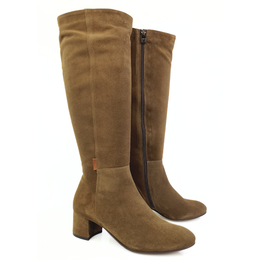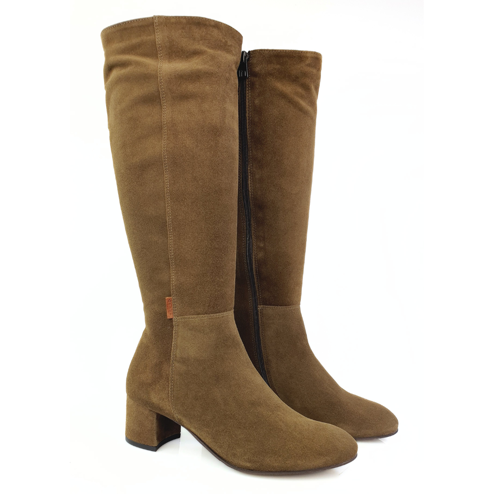Nessi 880/N kozaki brązowe welurowe na małym obcasie