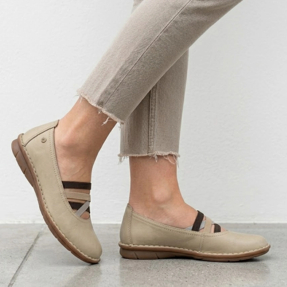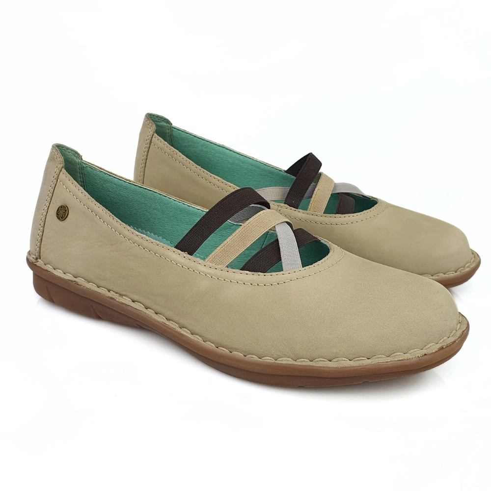 Półbuty damskie baleriny skórzane z gumkami beżowe Maciejka 6815