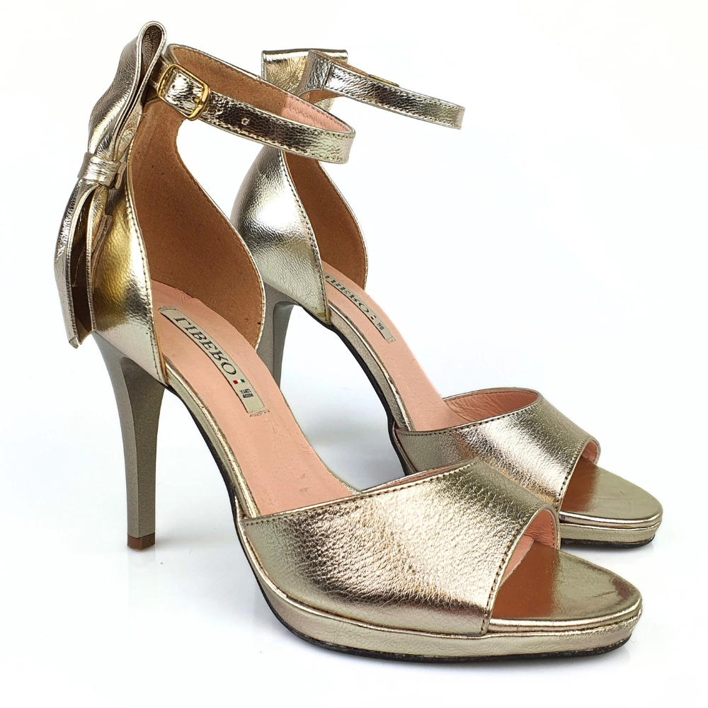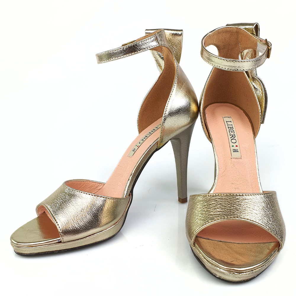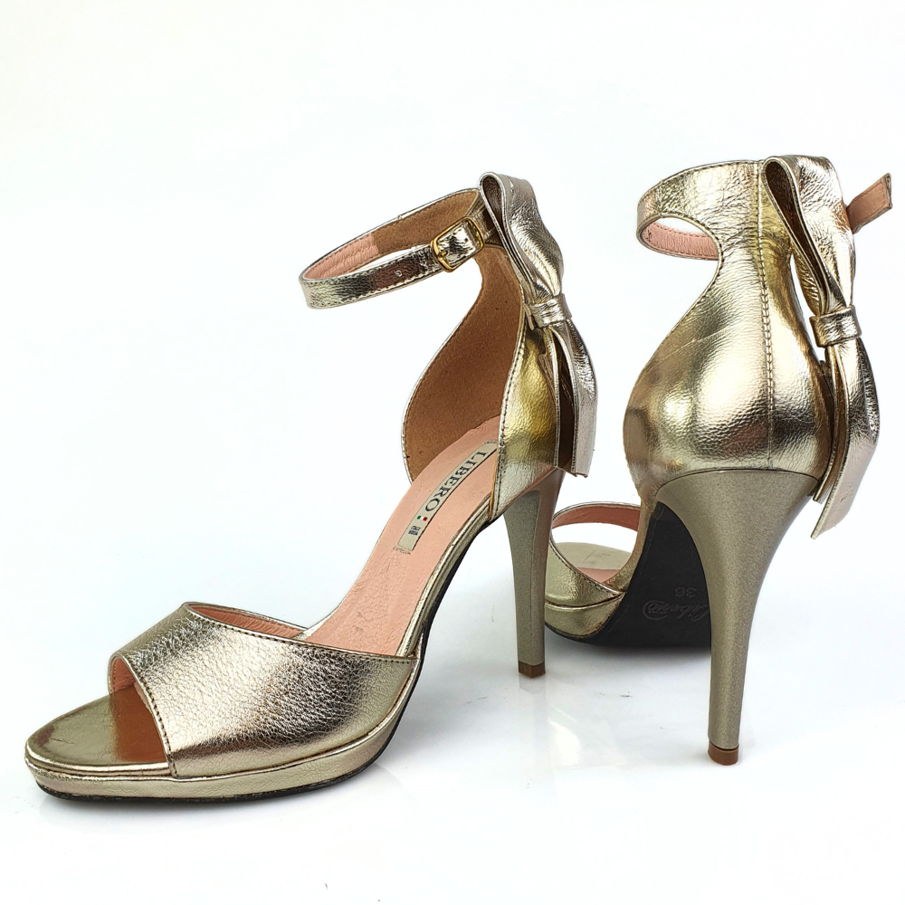 Sandałki na szpilce złote Libero 1495