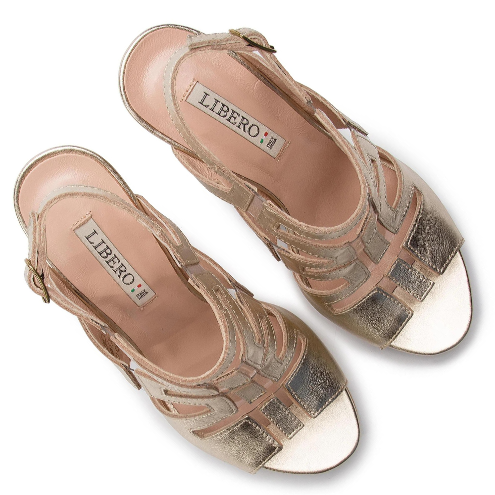 Sandałki na szpilce złote Libero 9310