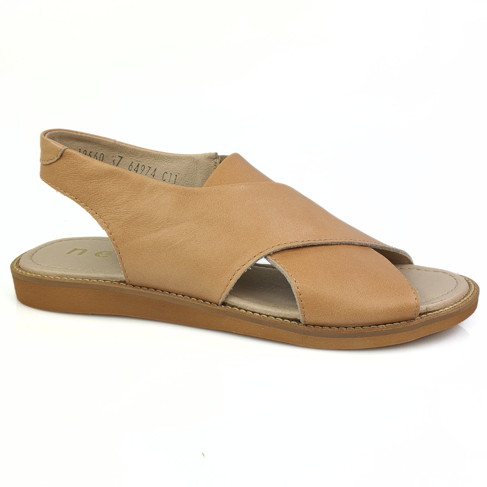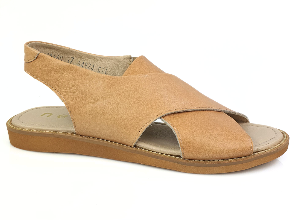 Zaletą sandałów w modelu 19560 jest doskonale dopracowany wzór- sandałki dobrze dopasowują się do stopy i świetnie się na niej układają podczas chodzenia. Sandałki wykonane są z naturalnej skóry licowej, która zapewni stopom wygodę i przewiewność. Palce i pięta są odkryte. Płaski obcas to kolejny atut tych sandałków. Sandałki Nessi mają pasek z gumeczka od wewnętrznej strony, co ułatwia zakładanie butów. Miękka, dobrze uginająca się podeszwa pozwoli na długie i wygodne użytkowanie. Twoje stopy odczują komfort i miękkość wkładki ze skóry naturalnej. Kolor beżowy jest elegancki i klasyczny. Buty są eleganckie, a jednocześnie nowoczesne i bardzo wygodne.