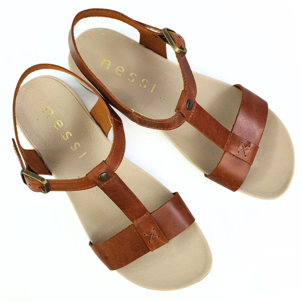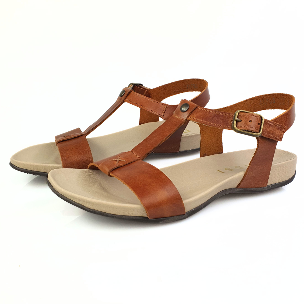 Zaletą sandałów w modelu 41703 jest doskonale dopracowany wzór- sandałki dobrze dopasowują się do stopy i świetnie się na niej układają podczas chodzenia. Sandałki wykonane są z naturalnej skóry licowej, która zapewni stopom wygodę i przewiewność. Palce i pięta są odkryte. Płaski obcas to kolejny atut tych sandałków. Sandałki Nessi zapinane są na pasek ze sprzączką. Miękka, dobrze uginająca się podeszwa pozwoli na długie i wygodne użytkowanie. Twoje stopy odczują komfort i miękkość wkładki ze skóry naturalnej. Kolor koniak (jasny brąz) eksponuje opalone stopy. Buty są eleganckie, a jednocześnie nowoczesne i bardzo wygodne.