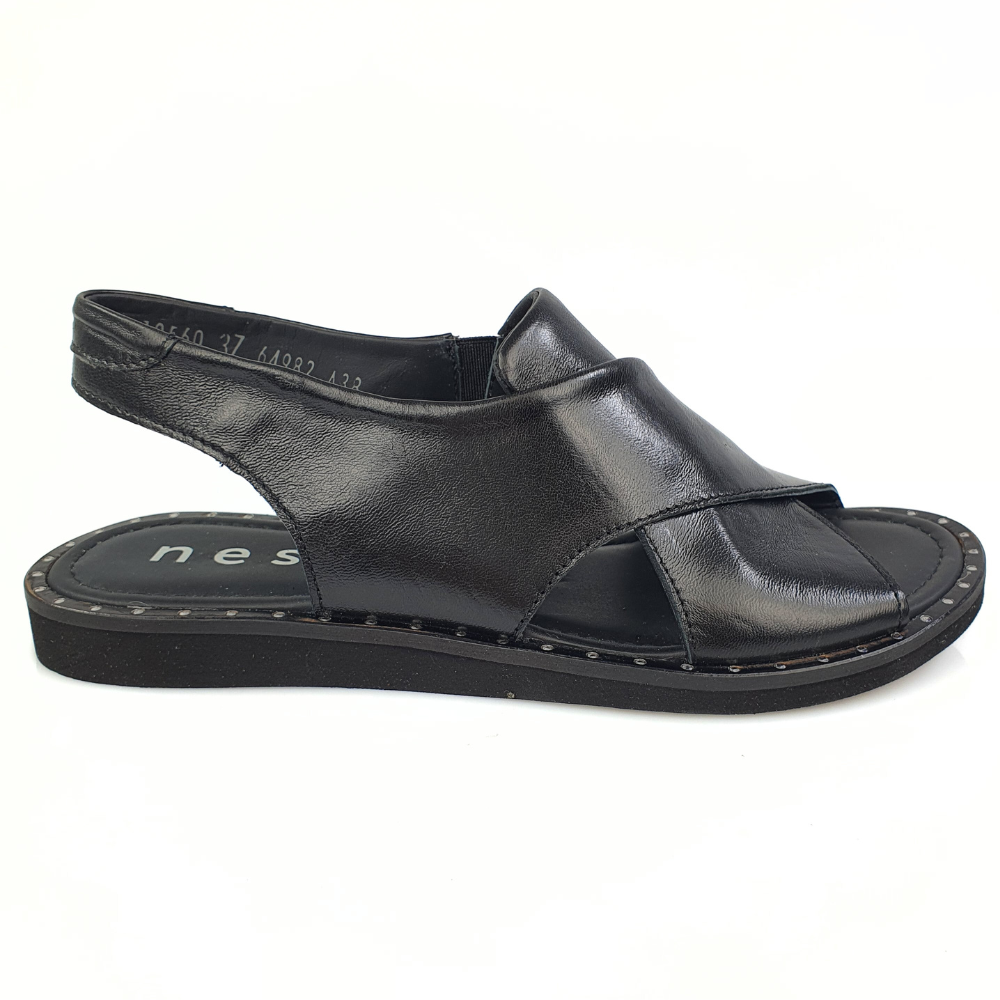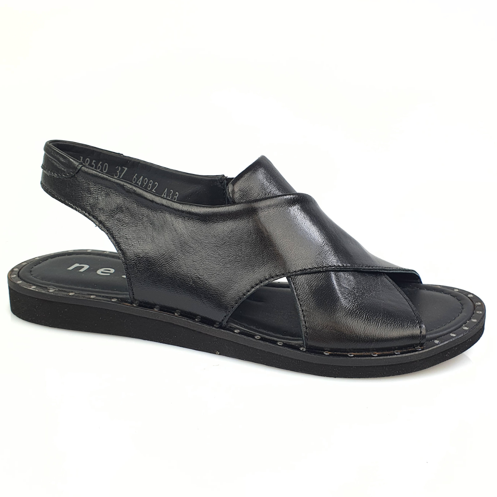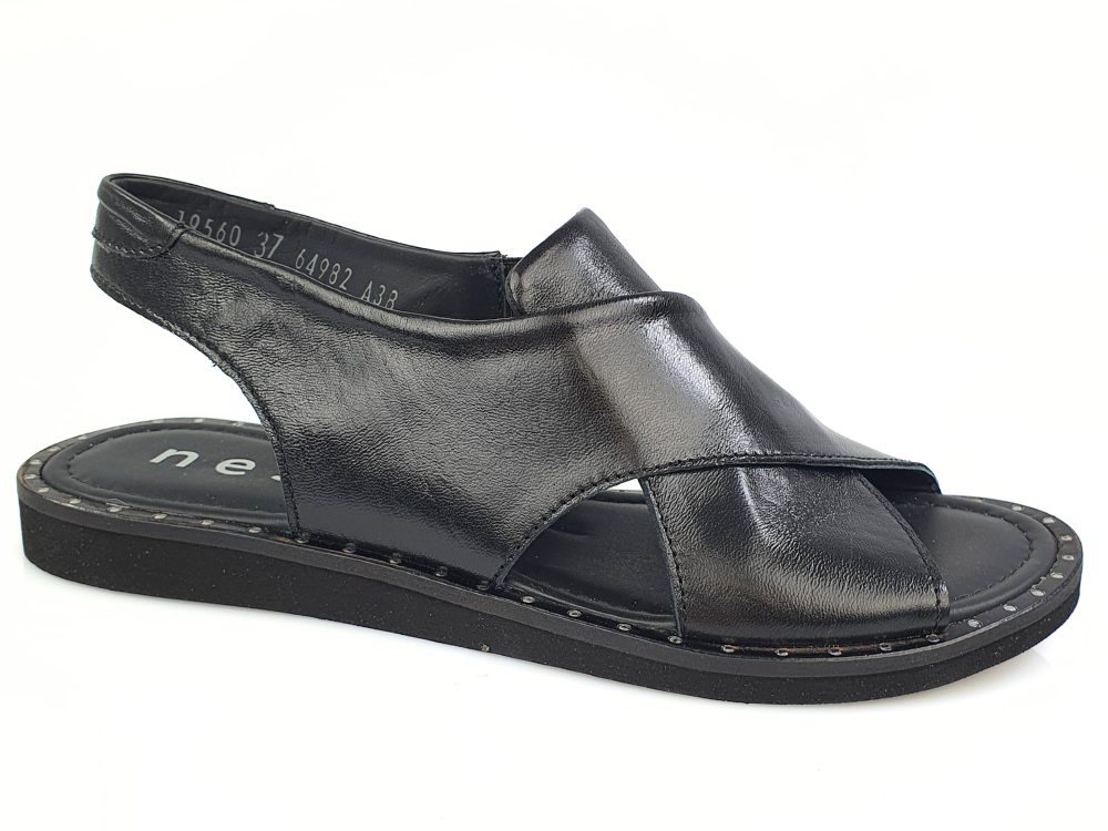 Zaletą sandałów w modelu 19560 jest doskonale dopracowany wzór- sandałki dobrze dopasowują się do stopy i świetnie się na niej układają podczas chodzenia. Sandałki wykonane są z naturalnej skóry licowej, która zapewni stopom wygodę i przewiewność. Palce i pięta są odkryte. Płaski obcas to kolejny atut tych sandałków. Sandałki Nessi mają pasek z gumeczka od wewnętrznej strony, co ułatwia zakładanie butów. Miękka, dobrze uginająca się podeszwa pozwoli na długie i wygodne użytkowanie. Twoje stopy odczują komfort i miękkość wkładki ze skóry naturalnej. Kolor czarny jets elegancki i klasyczny. Buty są eleganckie, a jednocześnie nowoczesne i bardzo wygodne.