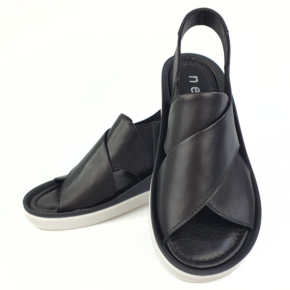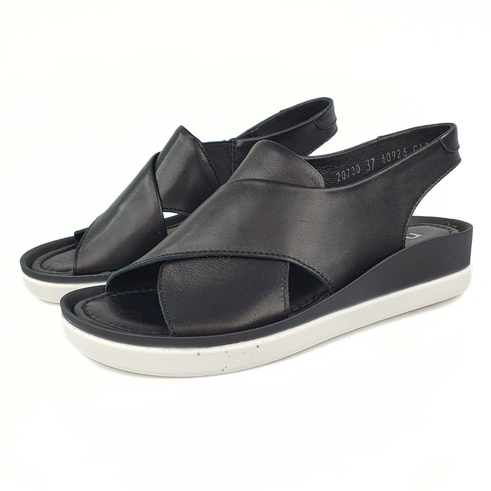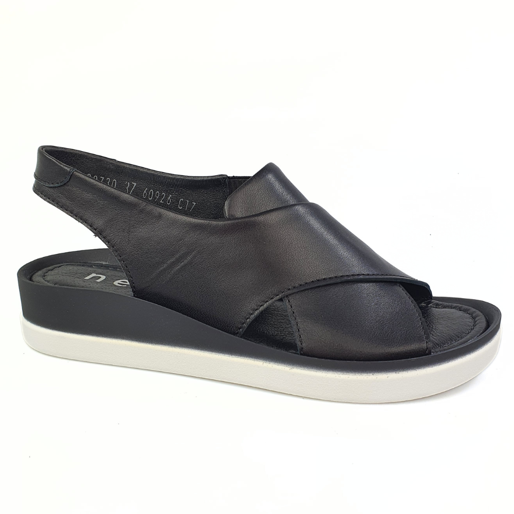 Zaletą sandałów w modelu 20730 jest doskonale dopracowany wzór- sandałki dobrze dopasowują się do stopy i świetnie się na niej układają podczas chodzenia. Sandałki wykonane są z naturalnej skóry licowej, która zapewni stopom wygodę i przewiewność. Palce i pięta są odkryte. Płaski obcas to kolejny atut tych sandałków. Sandałki Nessi wygodnie się zakłada, ponieważ paseczek ma wszytą gumeczkę. Miękka, dobrze uginająca się podeszwa pozwoli na długie i wygodne użytkowanie. Twoje stopy odczują komfort i miękkość wkładki ze skóry naturalnej. Czarny kolor to klasyka. Buty są eleganckie, a jednocześnie nowoczesne i bardzo wygodne.