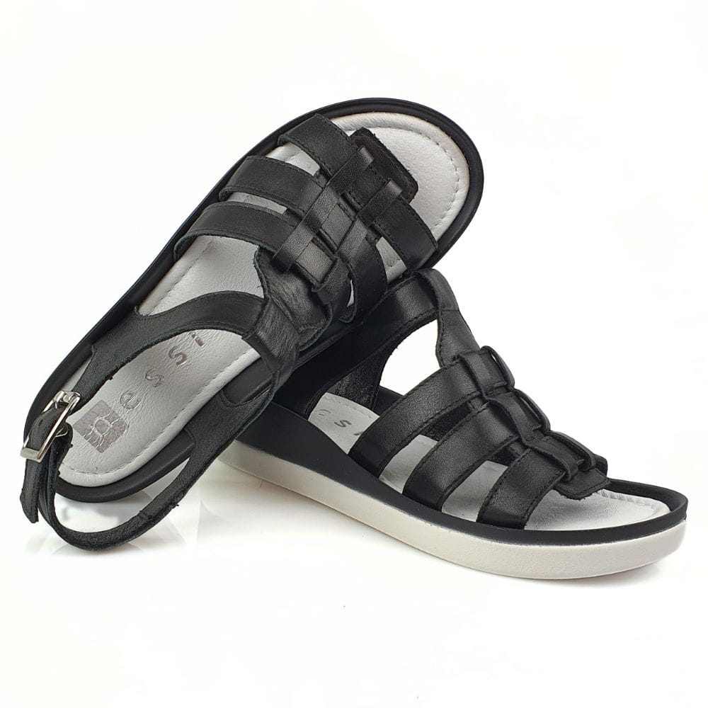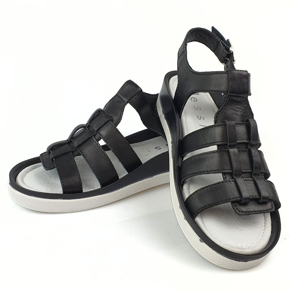 Zaletą sandałów w modelu 23451 jest doskonale dopracowany wzór- sandałki dobrze dopasowują się do stopy i świetnie się na niej układają podczas chodzenia. Sandały wykonane są z naturalnej skóry licowej, która zapewni stopom wygodę i przewiewność. Palce są odkryte. Płaski obcas to kolejny atut tych butów. Czarny kolor sandałów to klasyka. Grubsza podeszwa to najważniejszy atut, dodatkowo jest miękka i bardzo wygodna. Buty są nowoczesne i jednocześnie bardzo wygodne.