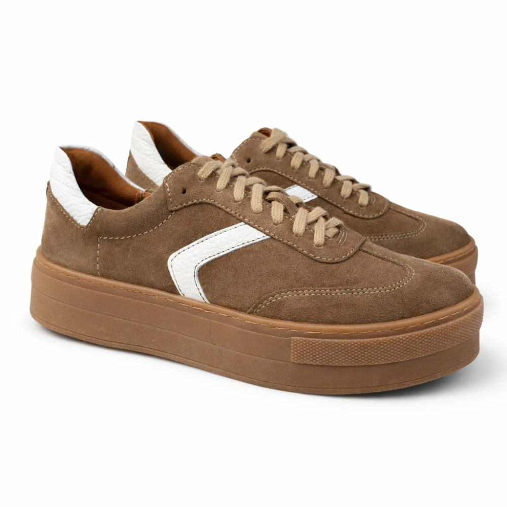Sneakersy sportowe półbuty damskie beż welur Bochmbut 1470