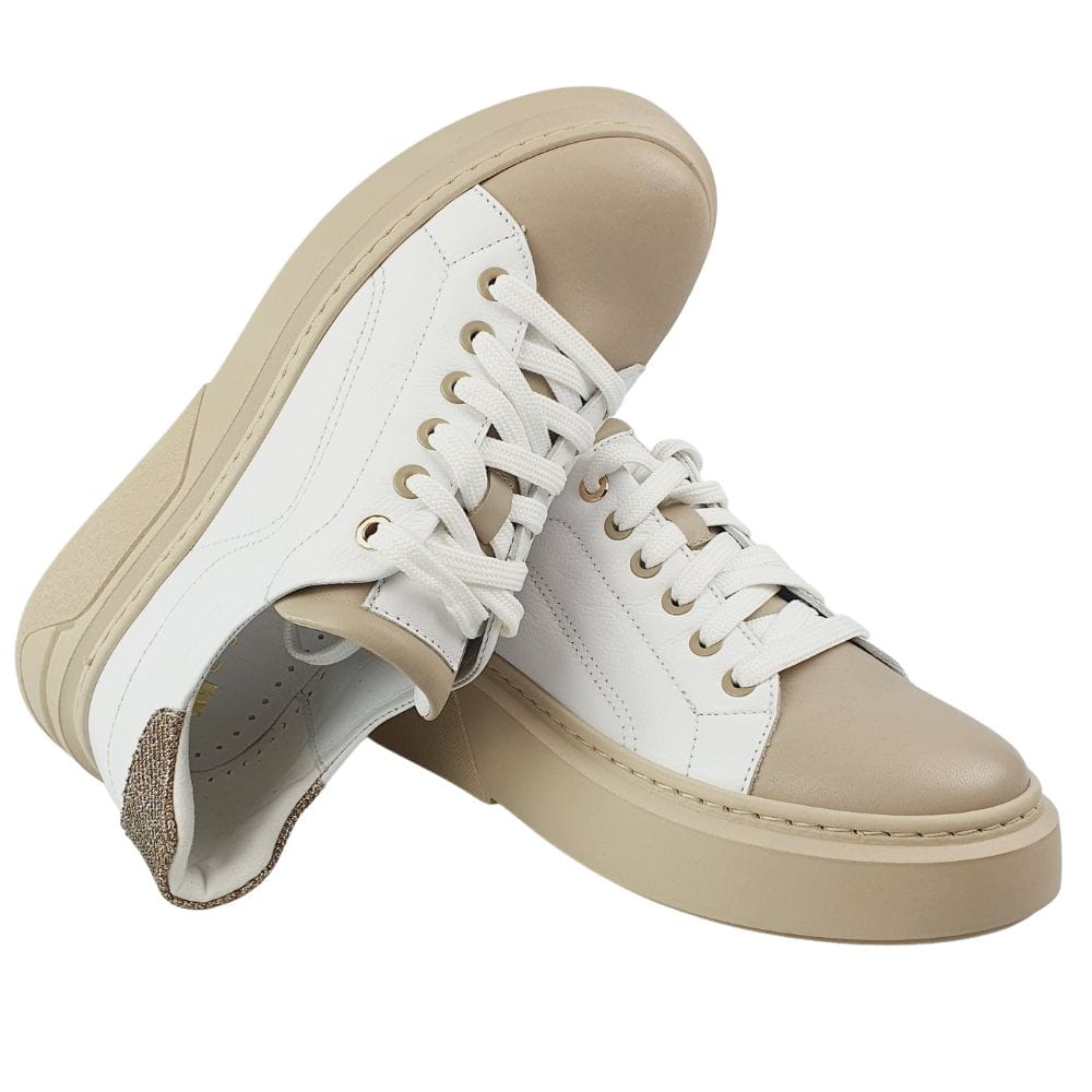 Sportowe buty damskie sneakersy białe z beżem Nessi 23412