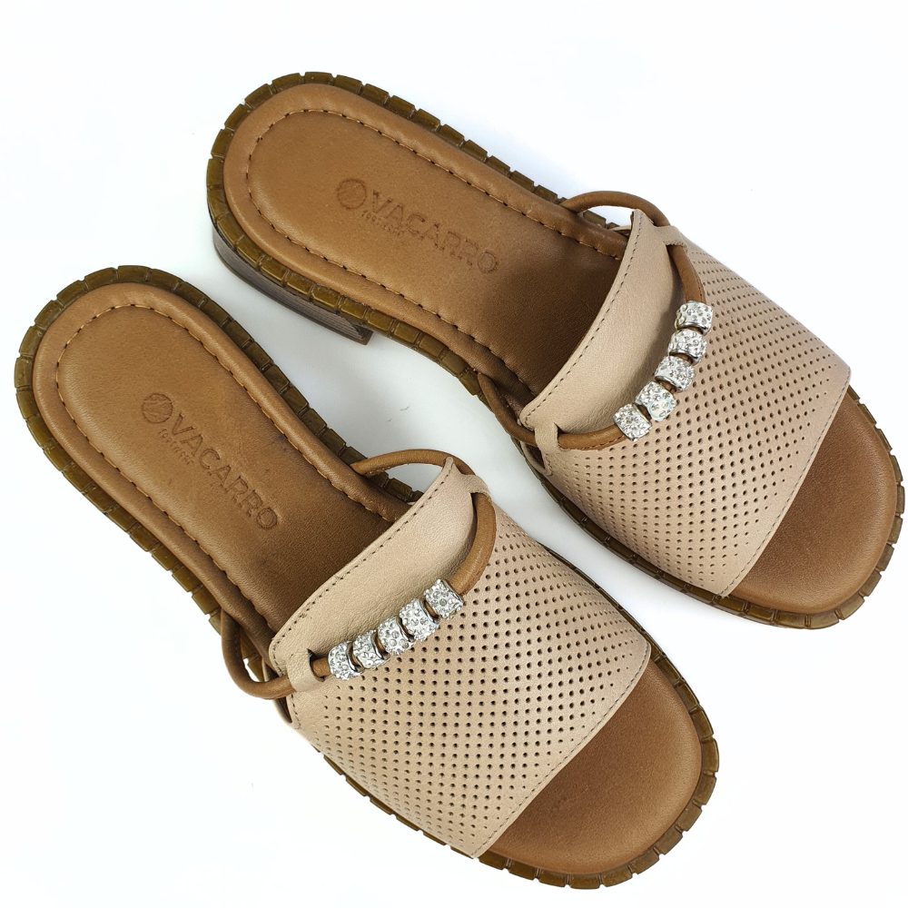 Najważniejszą cechą jaką mają klapki damskie model 791 jest ich miękkość i wygoda. Te klapki mają wygodną uginającą się podeszwę- już sprawdzona przez nasze klientki! Podeszwa jest miękka i świetnie pracuje podczas chodzenia - w tych butach możesz spędzić cały dzień bez zmęczenia, w pracy czy podczas wolnych chwil. Klapki Vacarro są oczywiście wykonane z naturalnej licowej skóry w kolorze beżowym. Na wierzchu cholewki jest dyskretna ozdoba - kilka błyszczących koralików na pasku.