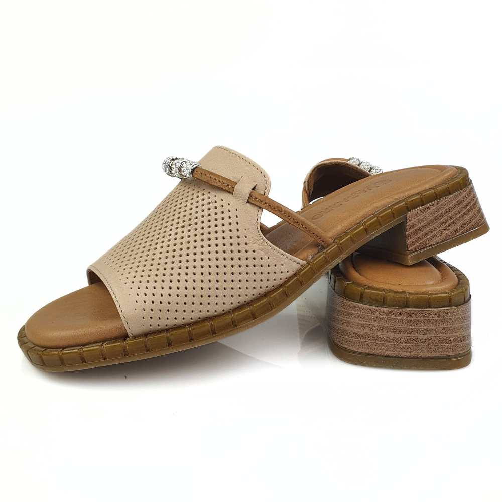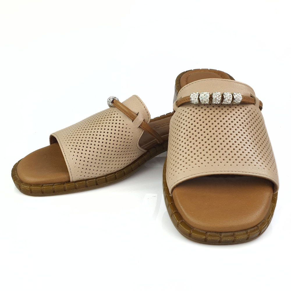 Wygodne klapki ze skóry beżowe Vacarro 791