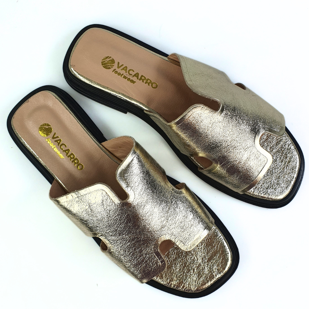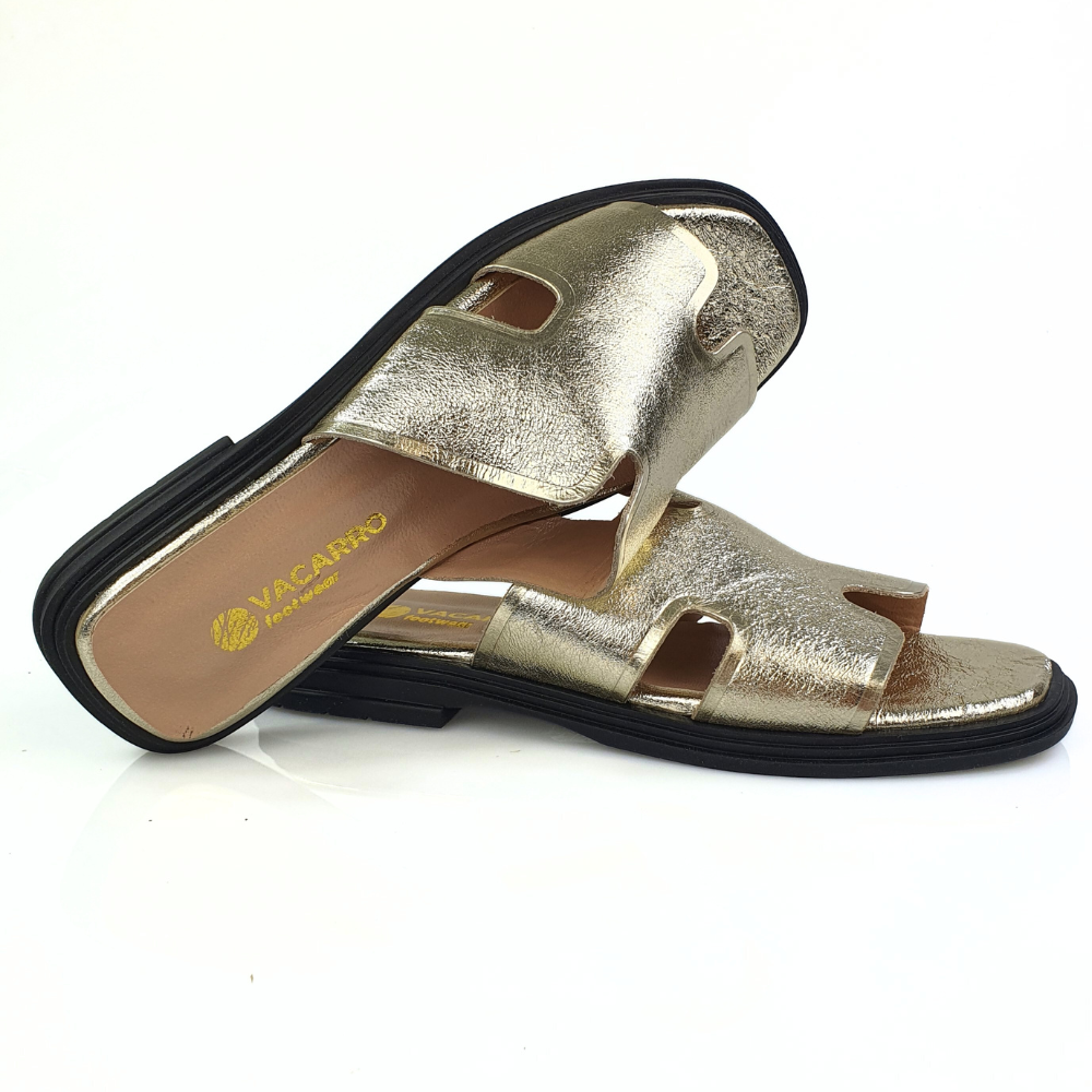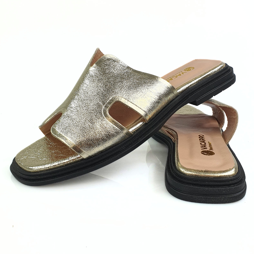Najważniejszą cechą jaką mają klapki damskie model 10965 jest ich miękkość i wygoda. Te klapki mają wygodną uginającą się podeszwę- już sprawdzona przez nasze klientki! Podeszwa jest miękka i świetnie pracuje podczas chodzenia - w tych butach możesz spędzić cały dzień bez zmęczenia, w pracy czy podczas wolnych chwil. Klapki Vacarro są oczywiście wykonane z naturalnej licowej skóry w kolorze złotym.