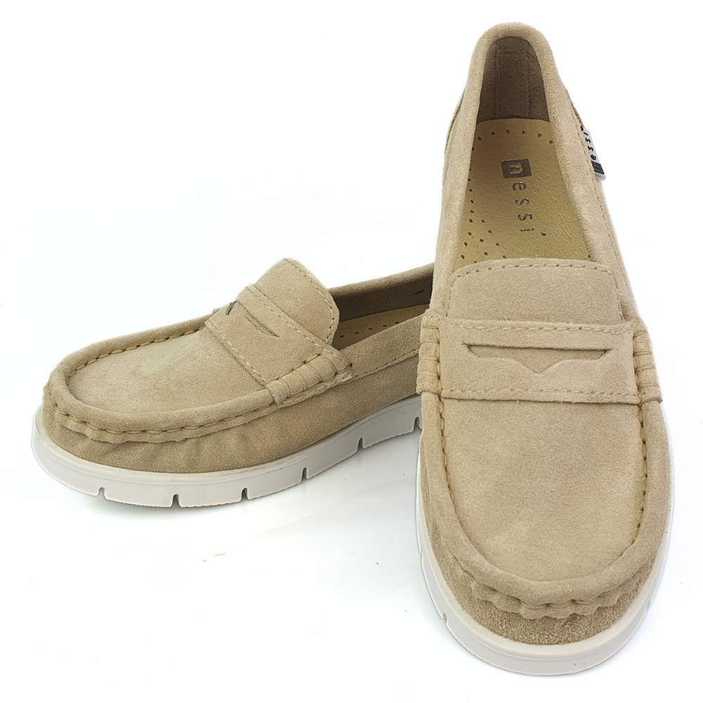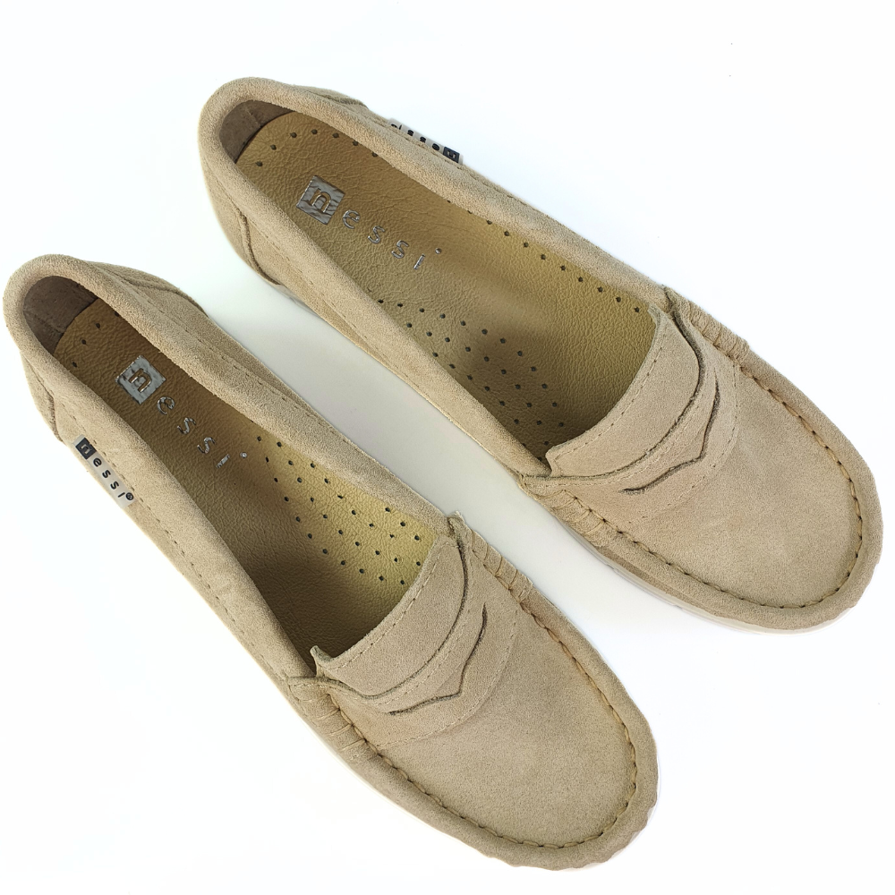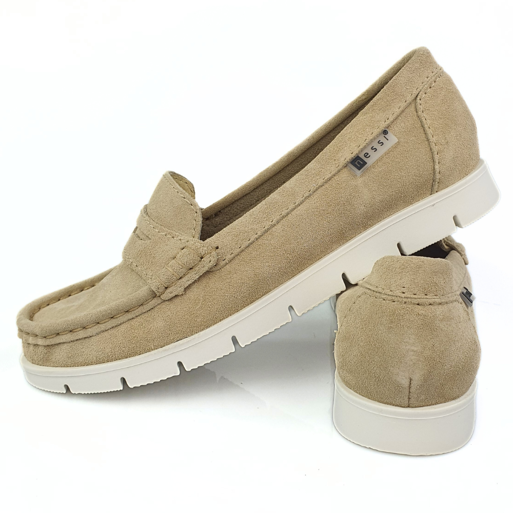 Zaletą mokasynów w modelu 76506 jest cholewka wykonana z naturalnej miękkiej skóry zamszowej w kolorze beżowym, która zapewni stopom wygodę i przewiewność. Miękka, dobrze uginająca się podeszwa pozwoli na długie i wygodne użytkowanie. Podeszwa jest gruba (ok 1,5 cm) z tyłu nieco grubsza (ok. 2 cm). Twoje stopy odczują komfort i miękkość wkładki ze skóry naturalnej.