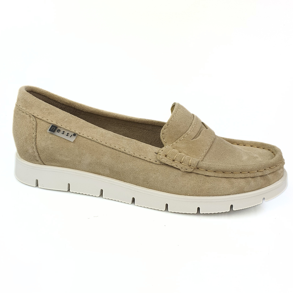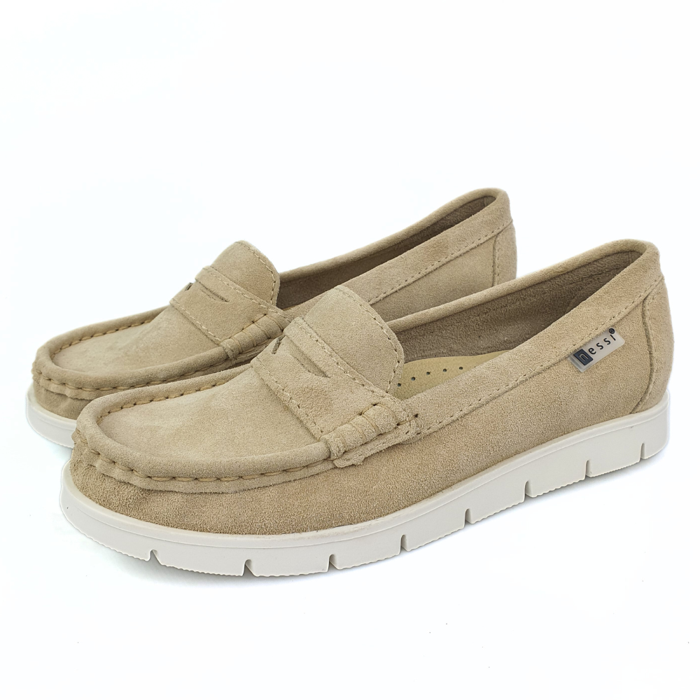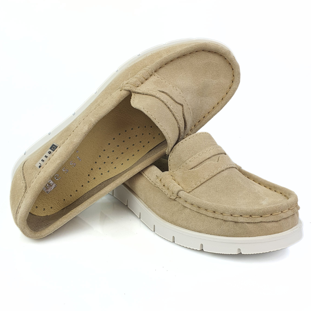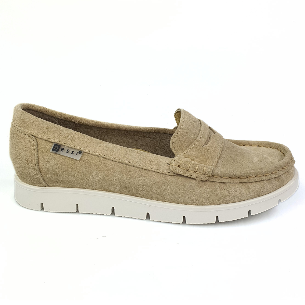 Zaletą mokasynów w modelu 76506 jest cholewka wykonana z naturalnej miękkiej skóry zamszowej w kolorze beżowym, która zapewni stopom wygodę i przewiewność. Miękka, dobrze uginająca się podeszwa pozwoli na długie i wygodne użytkowanie. Podeszwa jest gruba (ok 1,5 cm) z tyłu nieco grubsza (ok. 2 cm). Twoje stopy odczują komfort i miękkość wkładki ze skóry naturalnej.