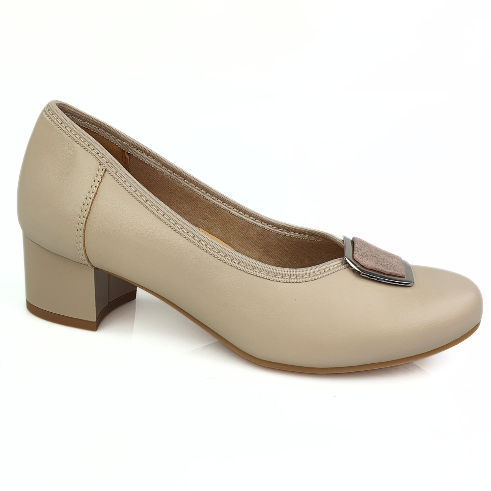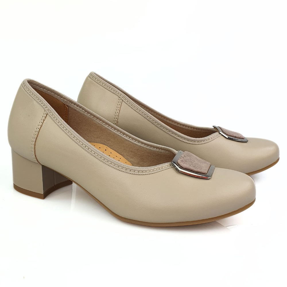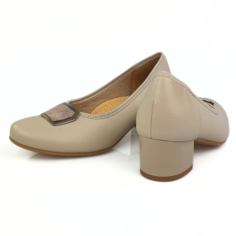 Wygodne półbuty damskie czółenka na małym obcasie beżowe Galant 3019